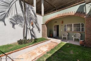Casa estilo mexicano, ubicada en el corazon de la Cruz de Huanacaxtle a una cuadra de la entrada a la Marina y al famoso mercado de artesanias de los sabados, la casa cuenta con patio frontal, amplia cochera techada, sala, cocina-comedor, cuarto de lavado, patio trasero con alberca privada y amplia recamara con bano en la planta baja; en la planta alta recamara con bano y vestidor y una terraza con vista a la alberca, ventiladores de techo y aire acondicionado.