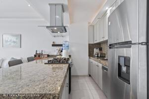 A unique chance to own in this coveted Southshore beachfront development. Recently remodeled to perfection, this condo boasts a fully equipped kitchen, 2 bedrooms, 2 full baths, plus w/d and AC throughout. Lush gardens surround this exclusive and secure project, complemented by a swimmable beach and a pool directly in front. This property is an ideal vacation home and a proven income-generating rental investment.