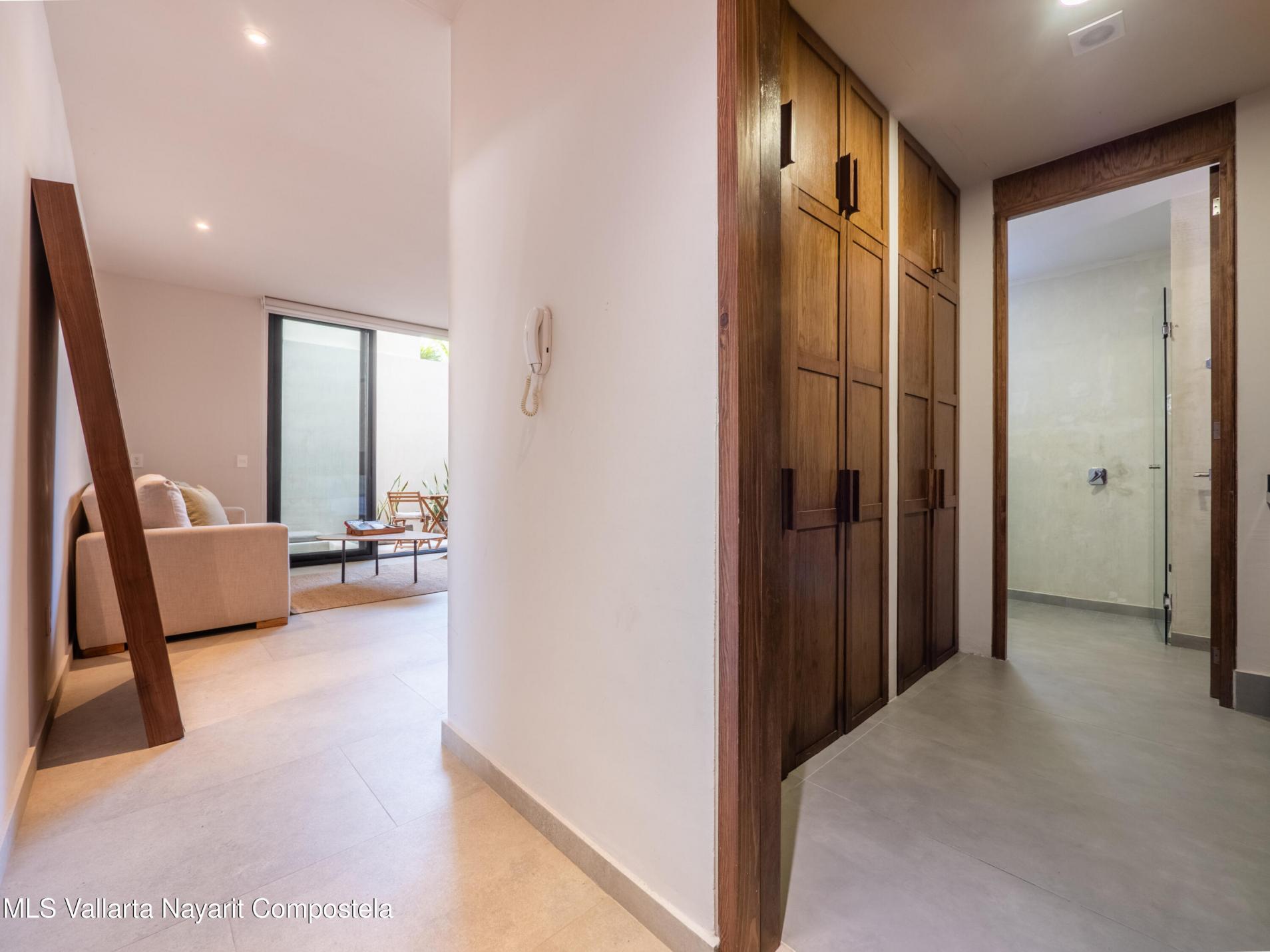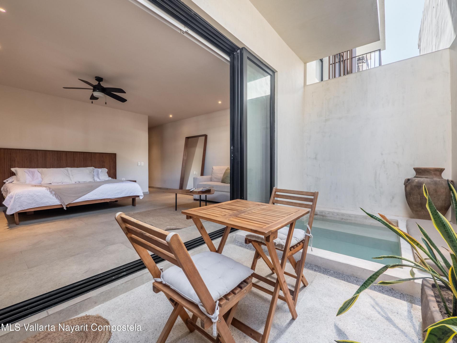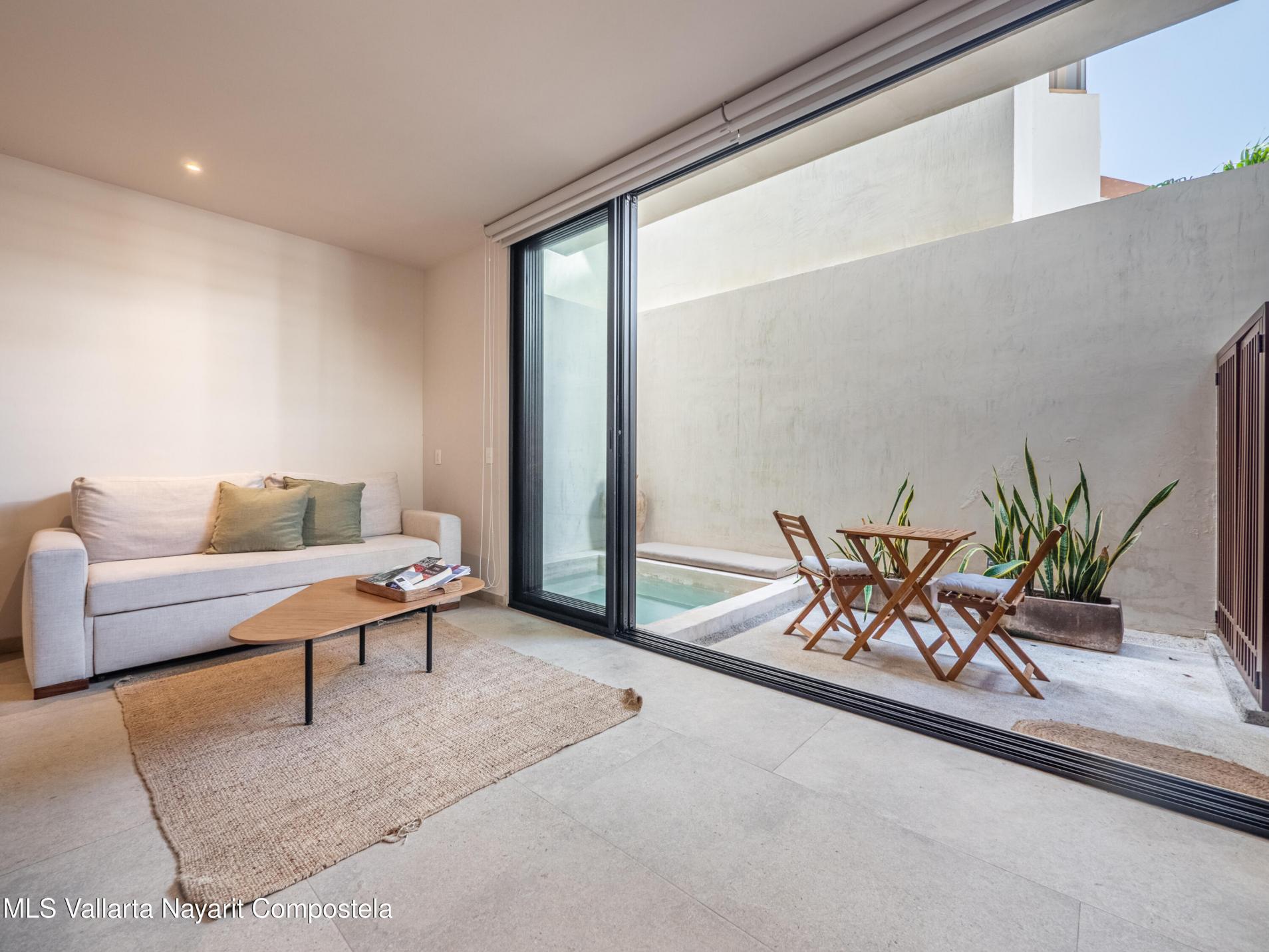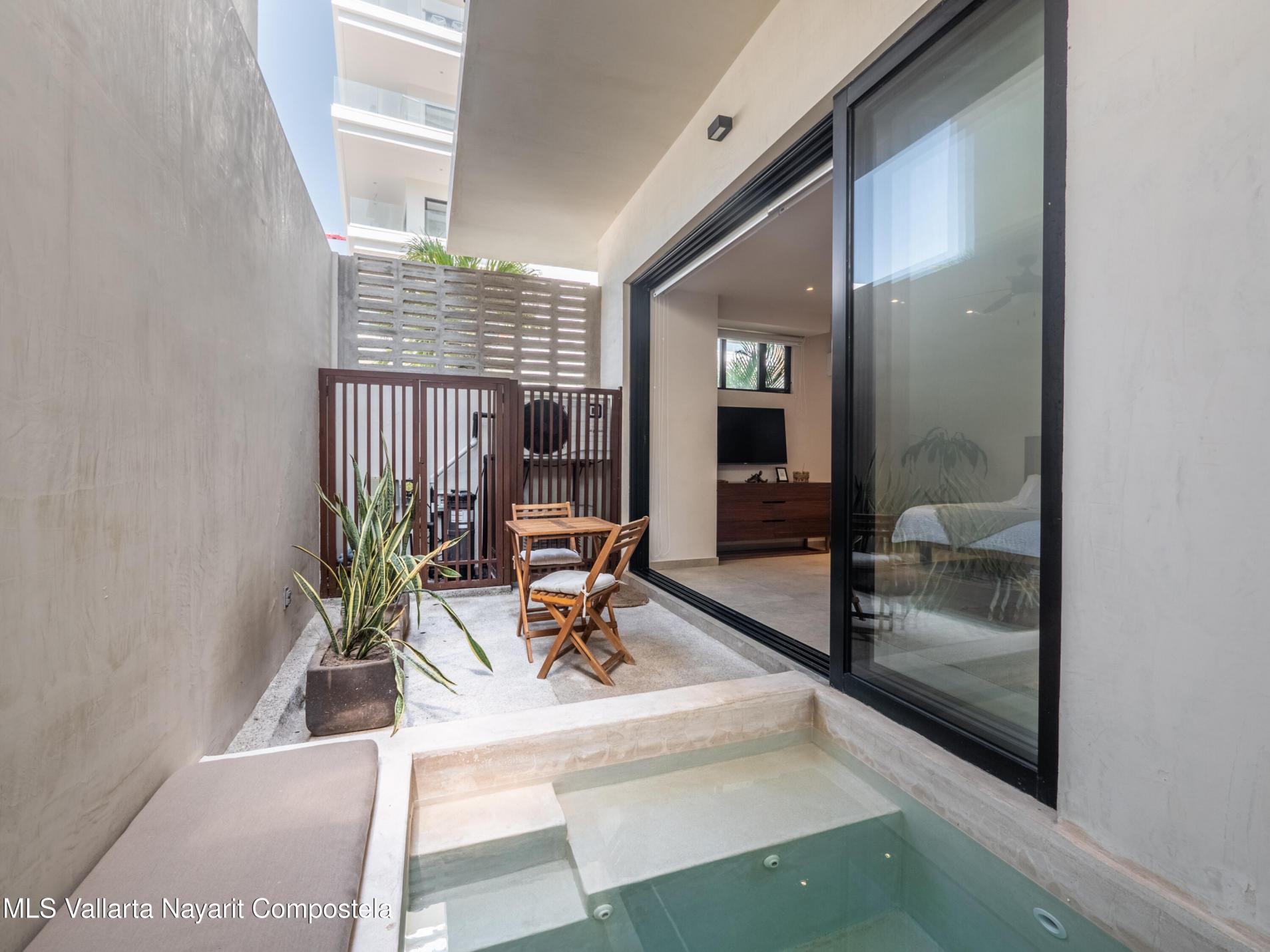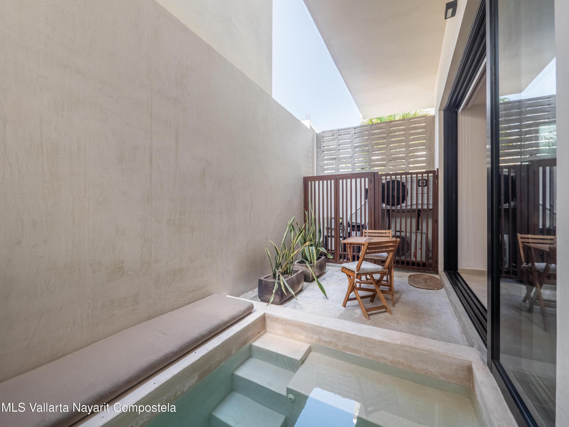 Welcome to your slice of paradise in the heart of coastal living! This fully furnished 1-bedroom ground-floor unit is located in Arenka, an exclusive boutique complex of only 12 units, just half a block from the beach along a charming pedestrian access.Thoughtfully designed for comfort and convenience, the unit features a private patio with a dipping pool, a compact yet well-equipped kitchen, laundry closet, and stylish furnishings--completely turn-key and ready to rent or move into. Pet-friendly and ideal for both personal use and rental income.The complex offers onsite parking, onsite administration, an elevator, and a rooftop lounge with sweeping ocean views--the perfect place to unwind. Located just steps from the sand and a short walk to vibrant restaurants, shops, and cafes,