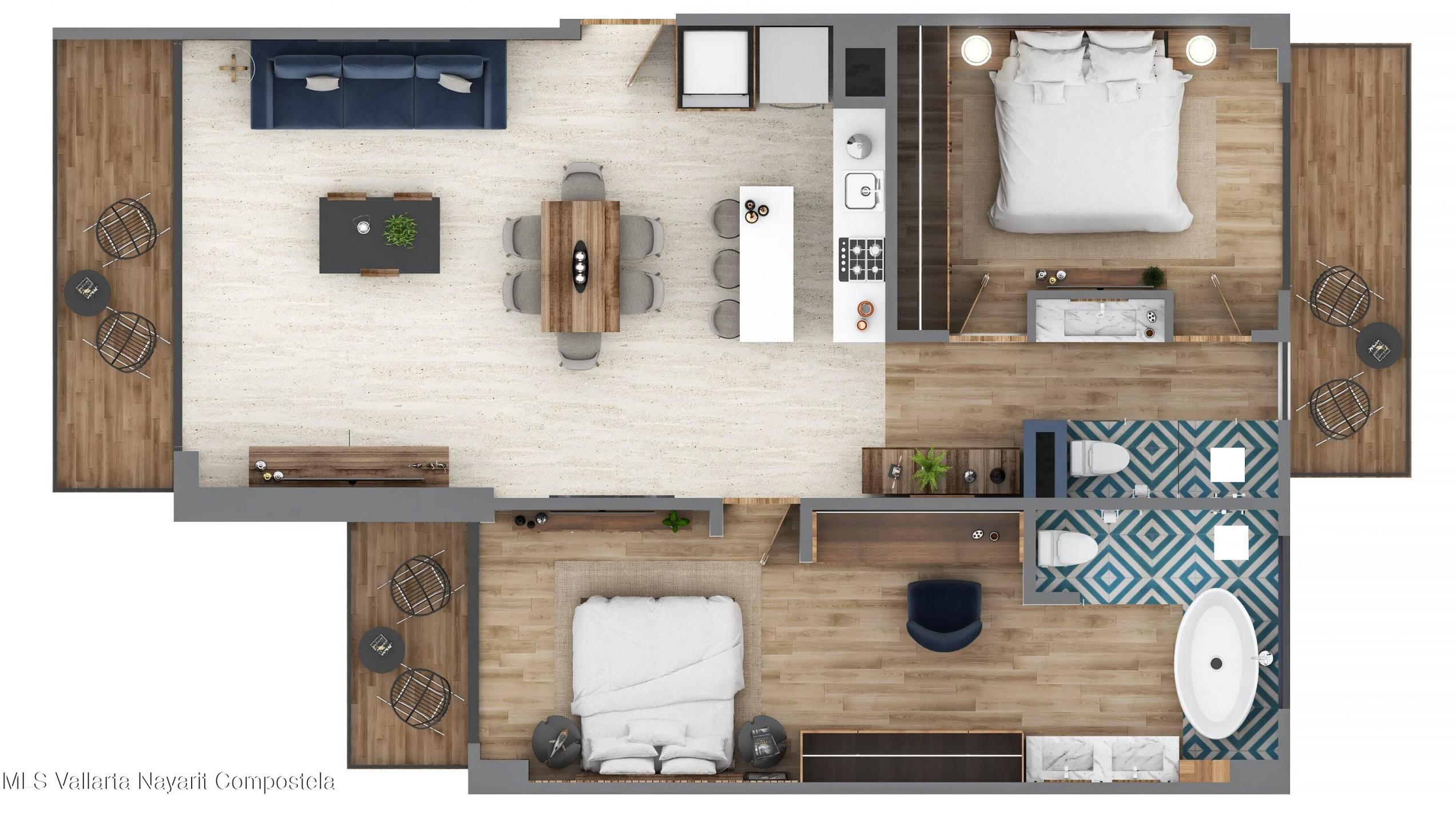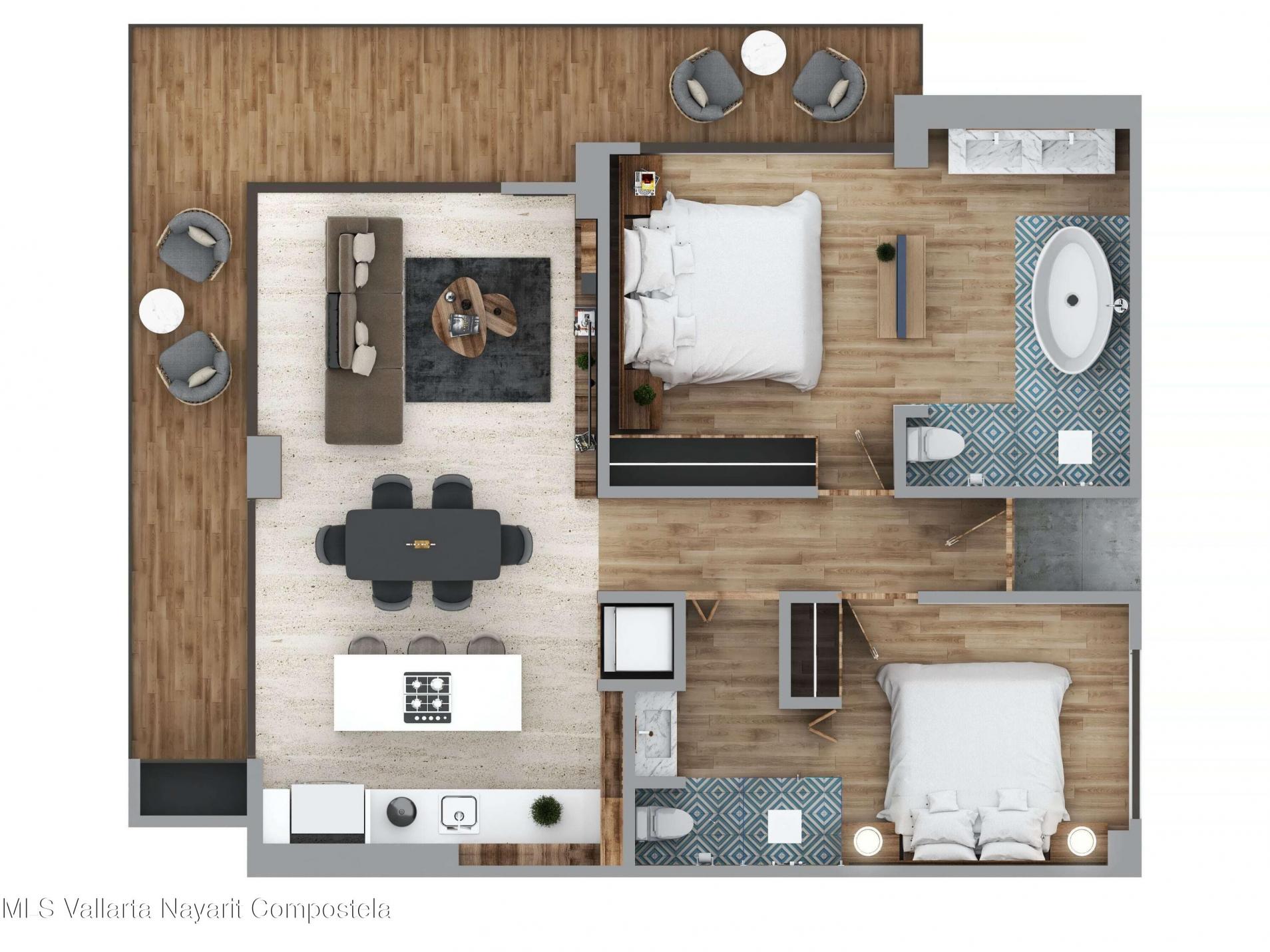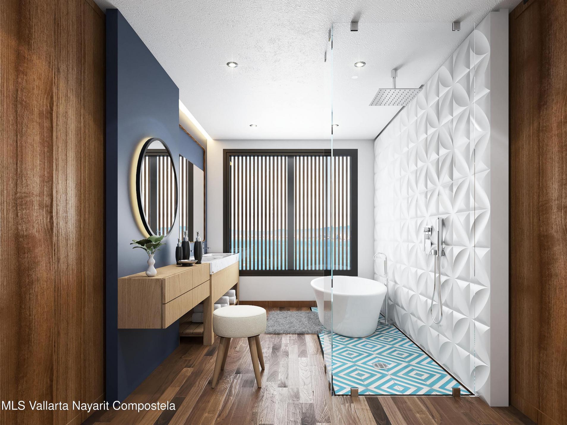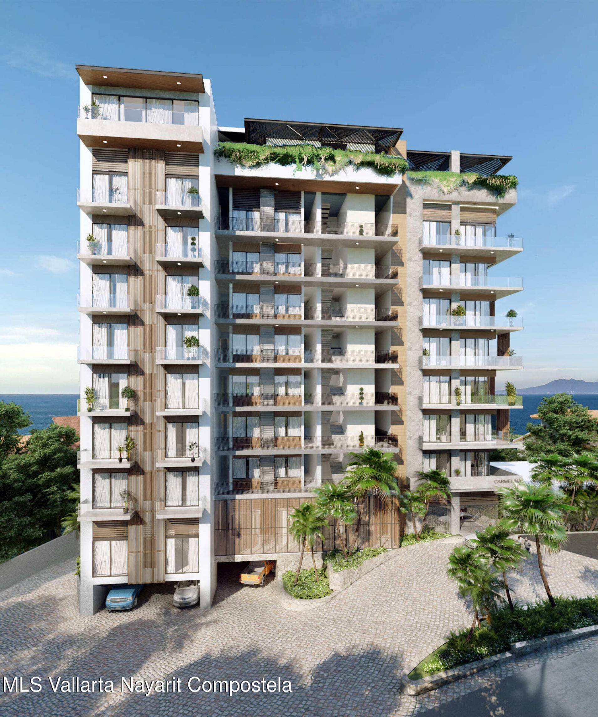 Carmelina offers luxury 1- and 2-bedroom oceanview condos for sale in Puerto Vallarta. Residences include marble floors, quartz kitchens with built-in appliances, spa-style bathrooms with soaking tubs, oak carpentry, and private terraces with panoramic ocean views. Ideal for investment, vacation, or full-time living. Parking is available for $25,000 USD Carmelina ofrece departamentos de lujo de 1 y 2 recamaras con vista al mar en venta en Puerto Vallarta. Con pisos de marmol, cocinas con cubierta de cuarzo y electrodomesticos, banos con tina, carpinteria en encino y terrazas privadas con vista al mar. Inversion, descanso o residencia. - Precio estacionamiento $25,000 USD