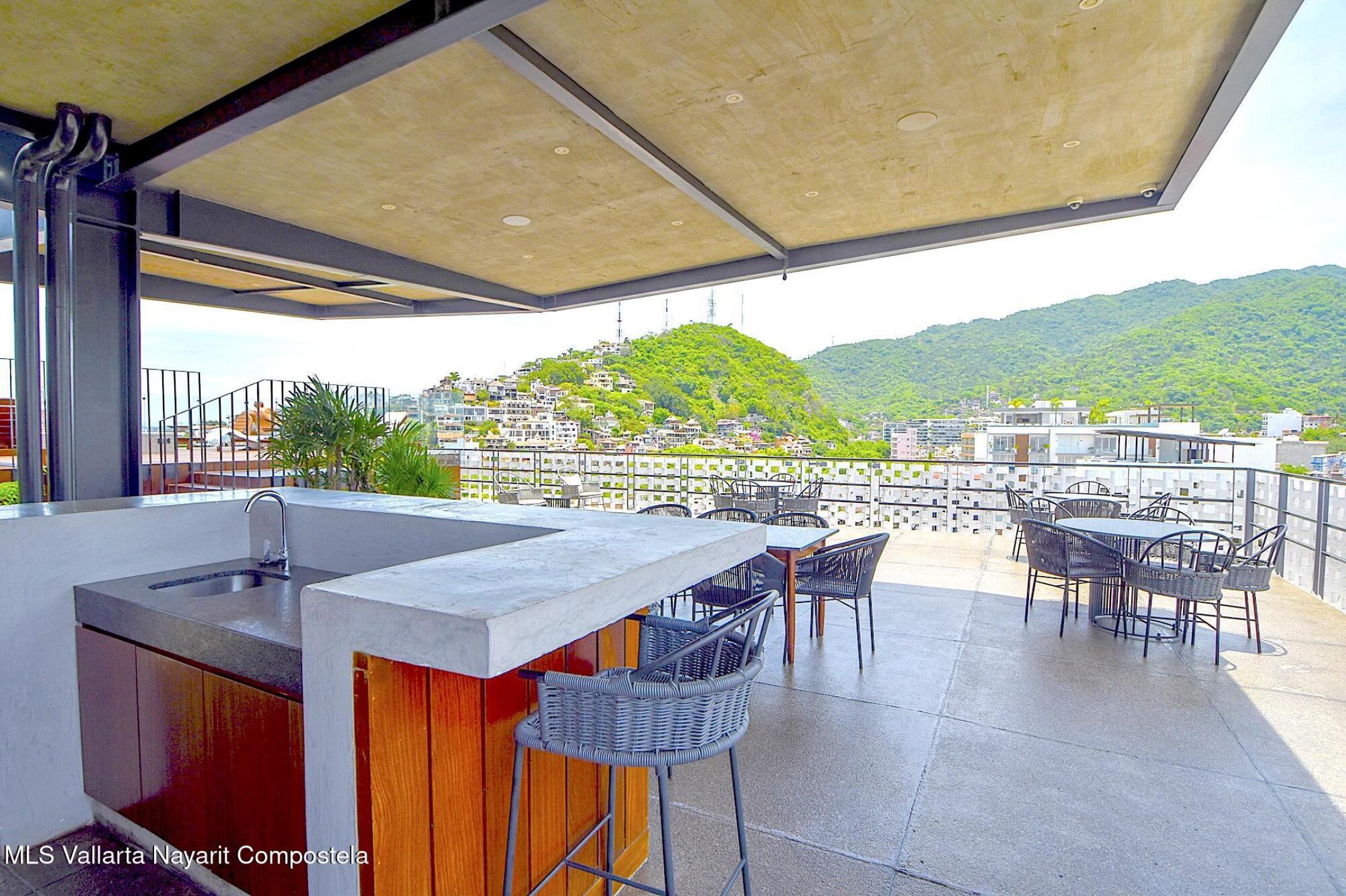 Este predio se encuentra en unos de los edificios mas architectural interesantes. Esta disponible este condominio decorado profesionalmente de una recamara, dos banos completos y totalmente amueblado Se completa con alberca y gimnasio en la azotea y seguridad las 24 horas.This Is a unit in one of Vallartas most interesting architectural buildings. This one bedroom, two full bath, professionally decorated condo, fully furnished unit is available. Rooftop pool and gymnasium , 24 hour reception make this unit super complete.