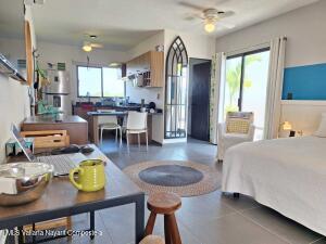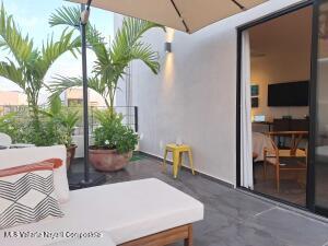 Hermoso condo 303-8, este comodo estudio se localiza en el tercer nivel y cuenta con una superficie total de 40.10 m de terreno y construccion. Se entrega totalmente listo para habitar, con mobiliario y equipamiento completo. Cuenta con una cocina integral, un bano completo, una terraza espaciosa, ventiladores de techo, aire acondicionado, lavadora, congelador y un area destinada para mascotas. Tambien ofrece cajon de estacionamiento y acceso a un patio de uso privado.