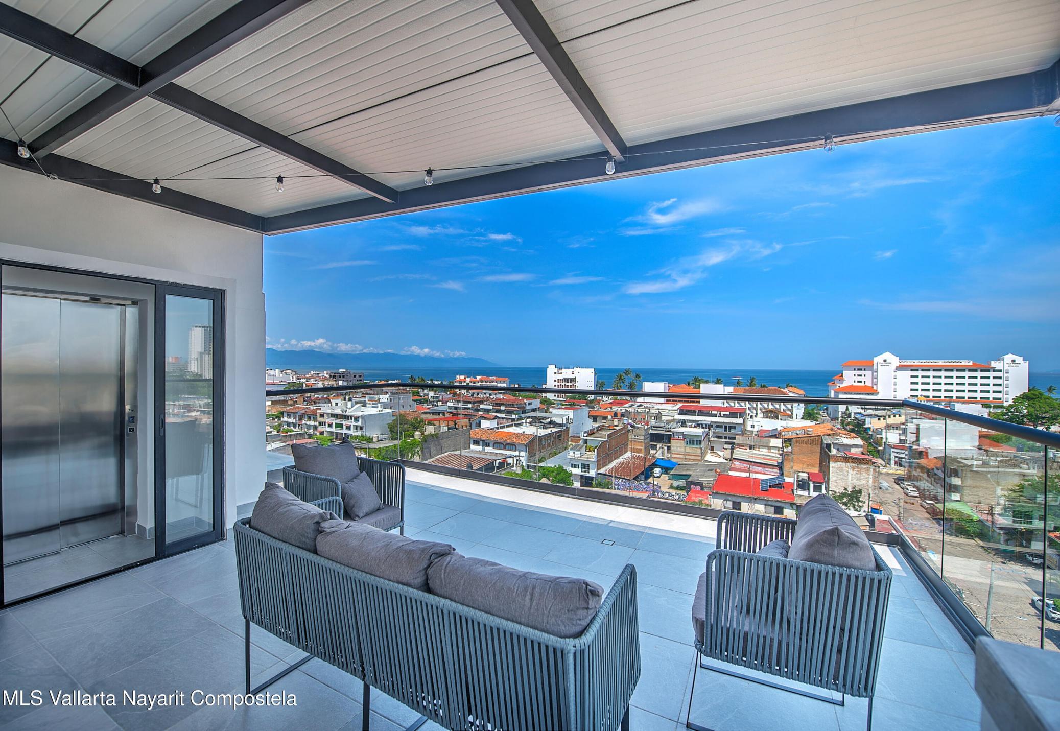 PRICE IS IN PESOSWake up to panoramic views that stretch from emerald green mountains to the shimmering Pacific Ocean.Nestled high above the city, this stylish two-bedroom, two-bath residence at Torre Doze invites you to live every day like you're on vacation.Step out onto your private rooftop terrace - perfect for morning coffee as the sun rises over the lush hillside, or evening cocktails as the sky melts into ocean blues and fiery sunsets.And for the ultimate touch of privacy and style, your elevator opens directly into your home - making every arrival feel exclusive.Inside, discover thoughtfully designed living spaces that blend comfort and modern style, making it effortless to entertain or simply unwind after a day exploring the vibrant charm of Puerto Vallarta.
