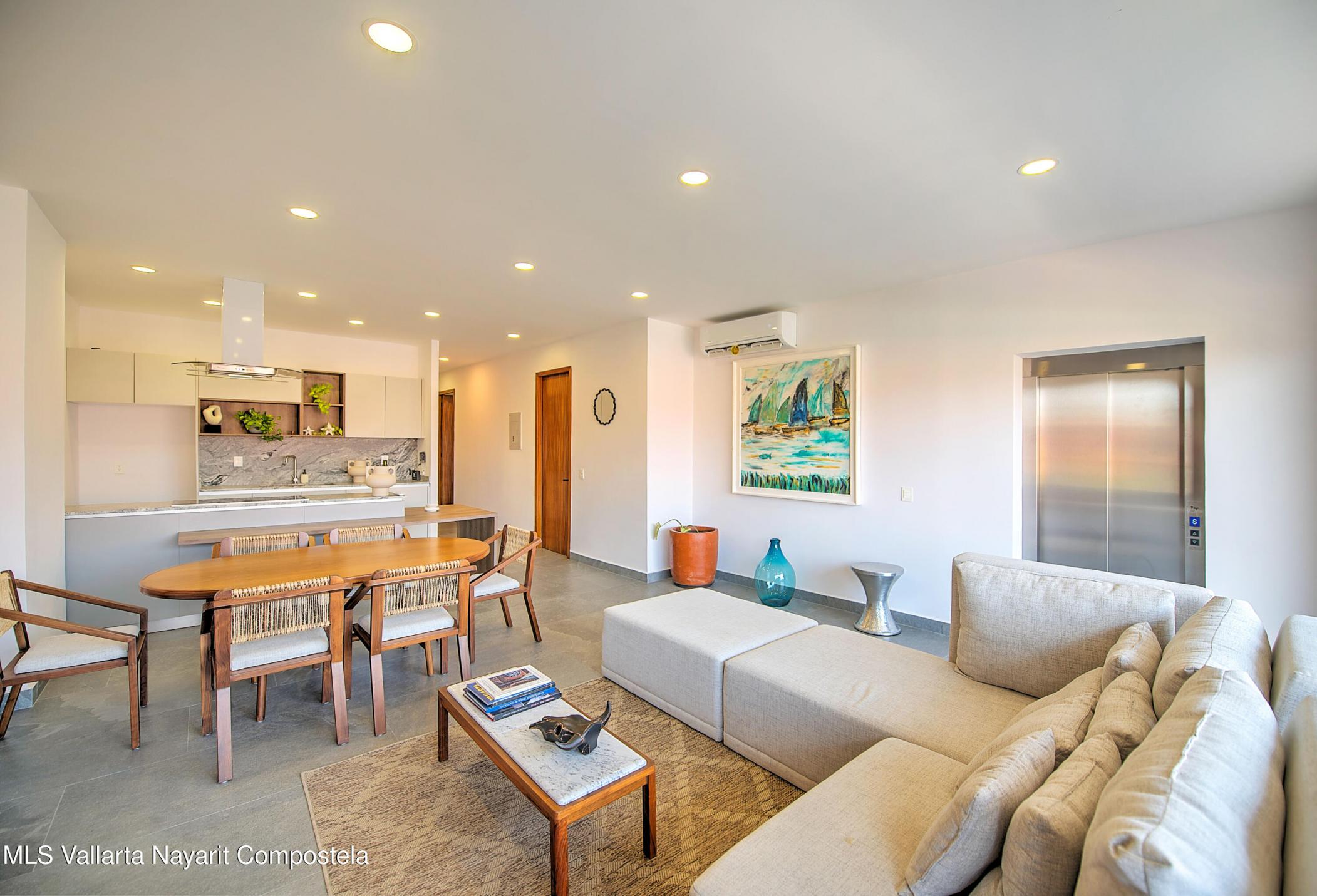 PRICE IS IN PESOSWake up to panoramic views that stretch from emerald green mountains to the shimmering Pacific Ocean.Nestled high above the city, this stylish two-bedroom, two-bath residence at Torre Doze invites you to live every day like you're on vacation.Step out onto your private rooftop terrace - perfect for morning coffee as the sun rises over the lush hillside, or evening cocktails as the sky melts into ocean blues and fiery sunsets.And for the ultimate touch of privacy and style, your elevator opens directly into your home - making every arrival feel exclusive.Inside, discover thoughtfully designed living spaces that blend comfort and modern style, making it effortless to entertain or simply unwind after a day exploring the vibrant charm of Puerto Vallarta.