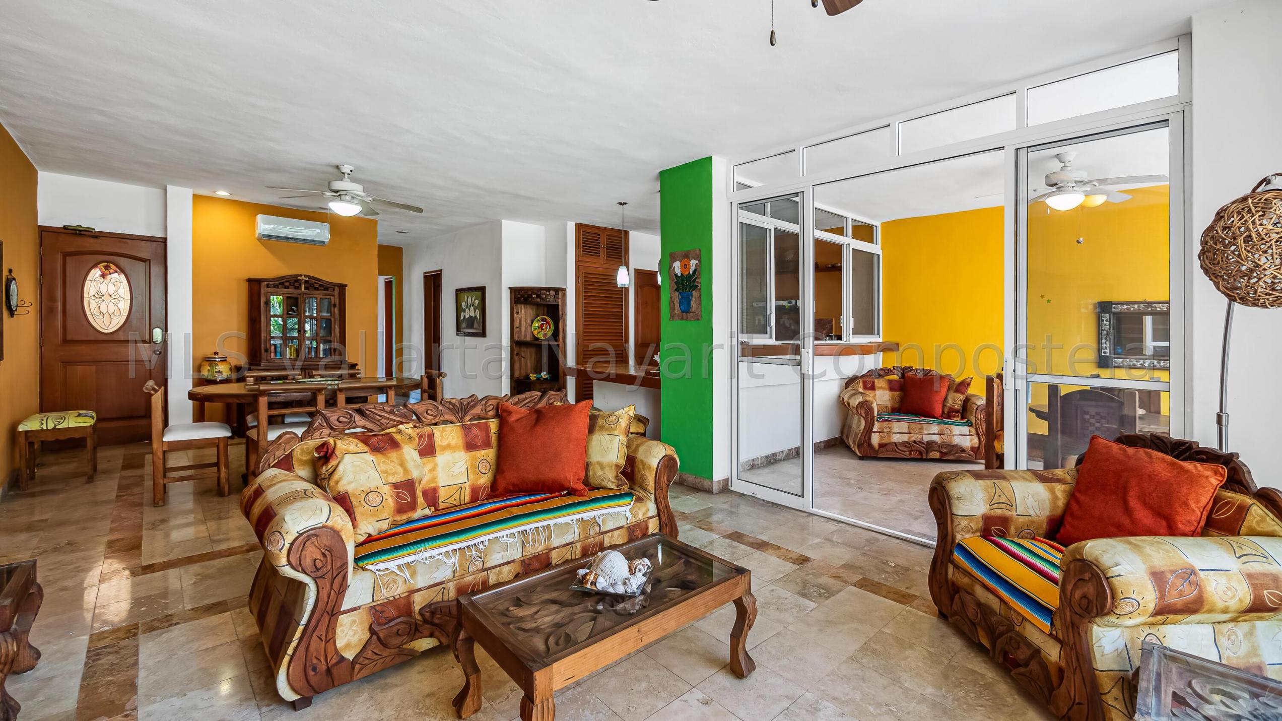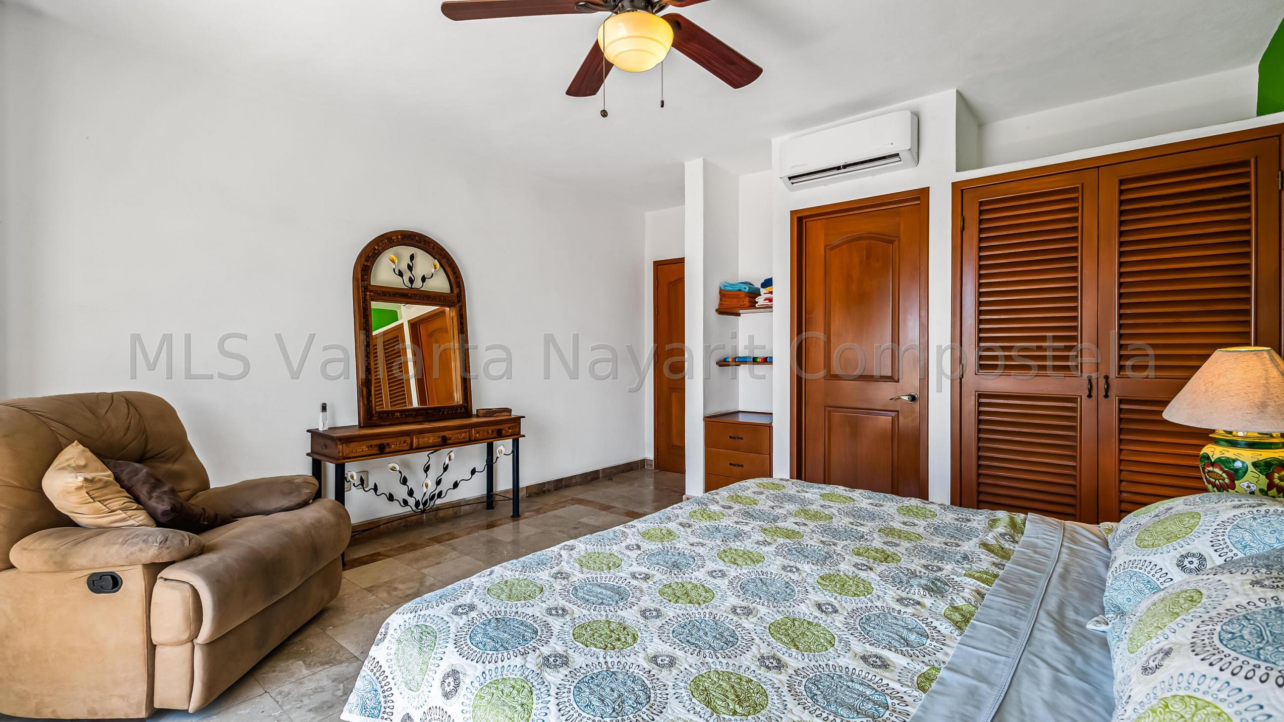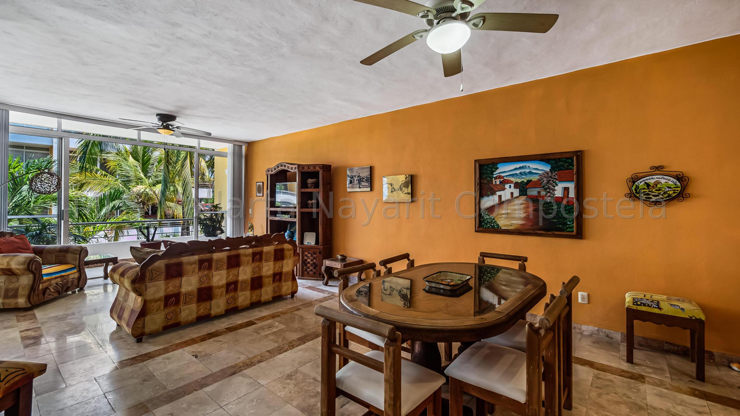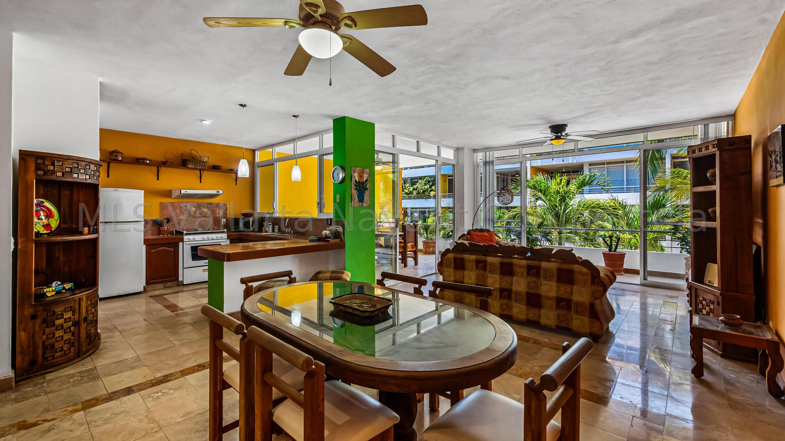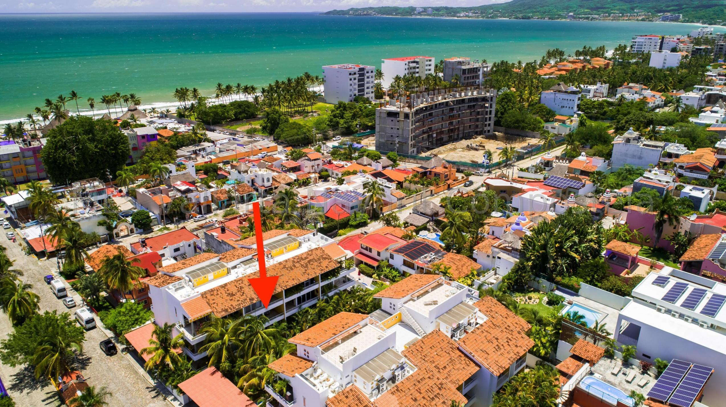 ENGLISH click More. Amplio Condominio de 2 Recamaras - A una Cuadra de la Playa Bucerias! Descubra su paraiso en este condominio de 2 recamaras y 2 banos con gran balcon, idealmente ubicado a solo una cuadra de la playa de Bucerias. Disfrute de las comodidades de la piscina, cascada, gimnasio, y una terraza en la azotea con impresionantes vistas al mar y a la montana, seguridad 24-7, portabicicletas, y en el sitio admin. Nota: no hay ascensor, pero es solo el segundo piso. Totalmente amueblado, este condominio esta listo para mudarse con techos altos, e incluye una plaza de aparcamiento cubierto. Perfecto como residencia permanente, casa de vacaciones, o propiedad de inversion, este condominio esta a pasos de la playa, supermercados, restaurantes, senderos y mucho mas.