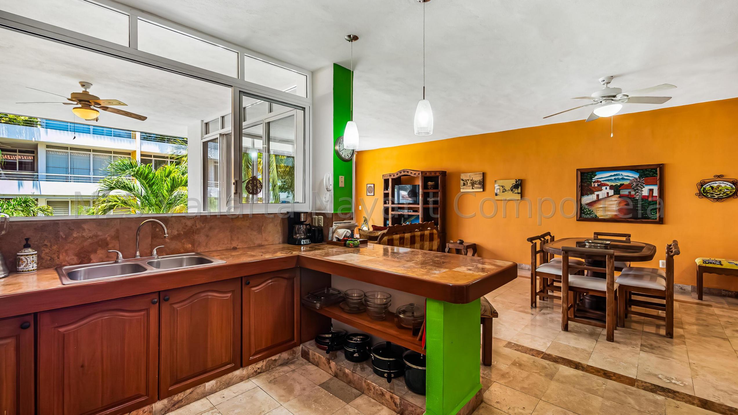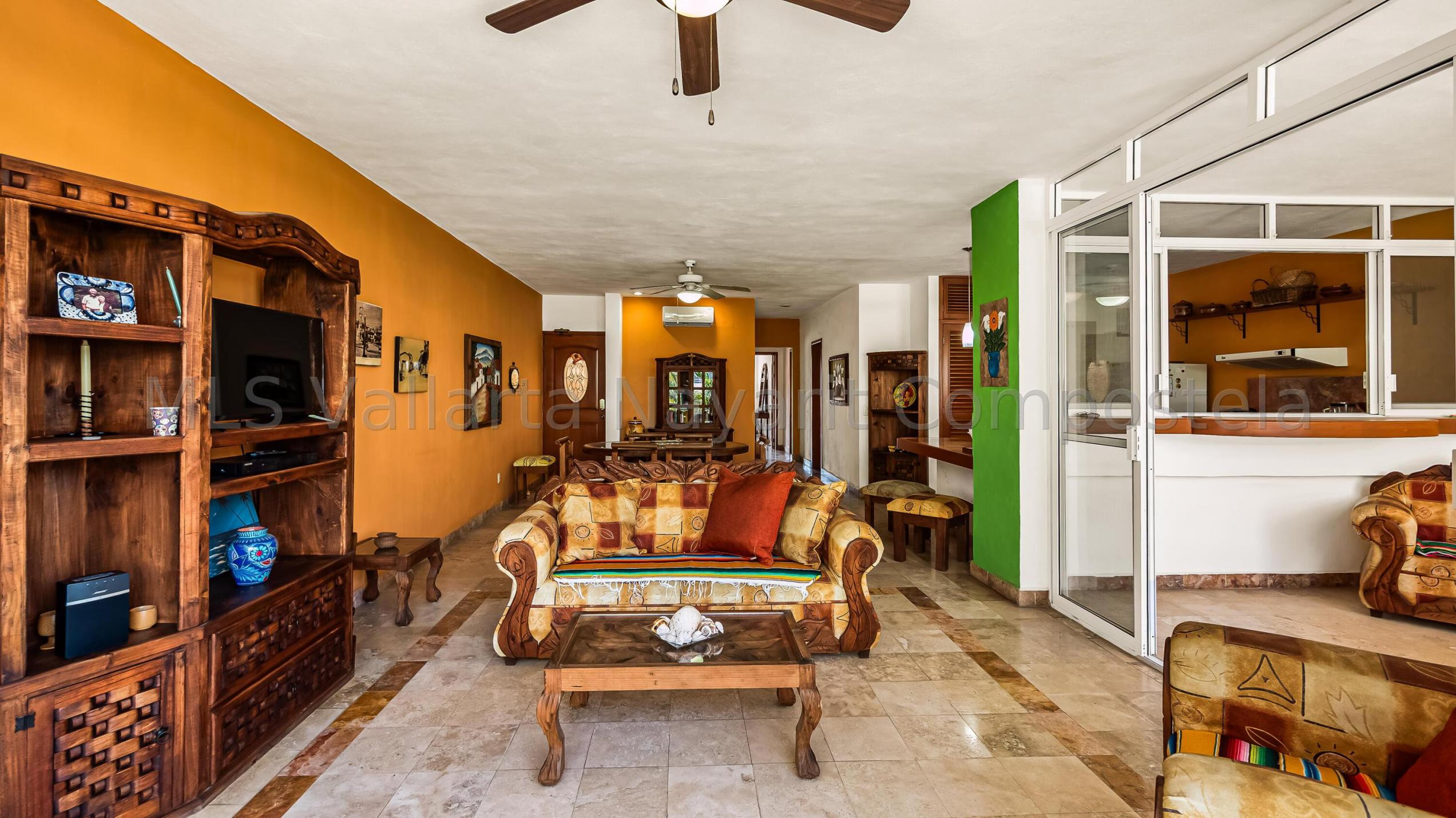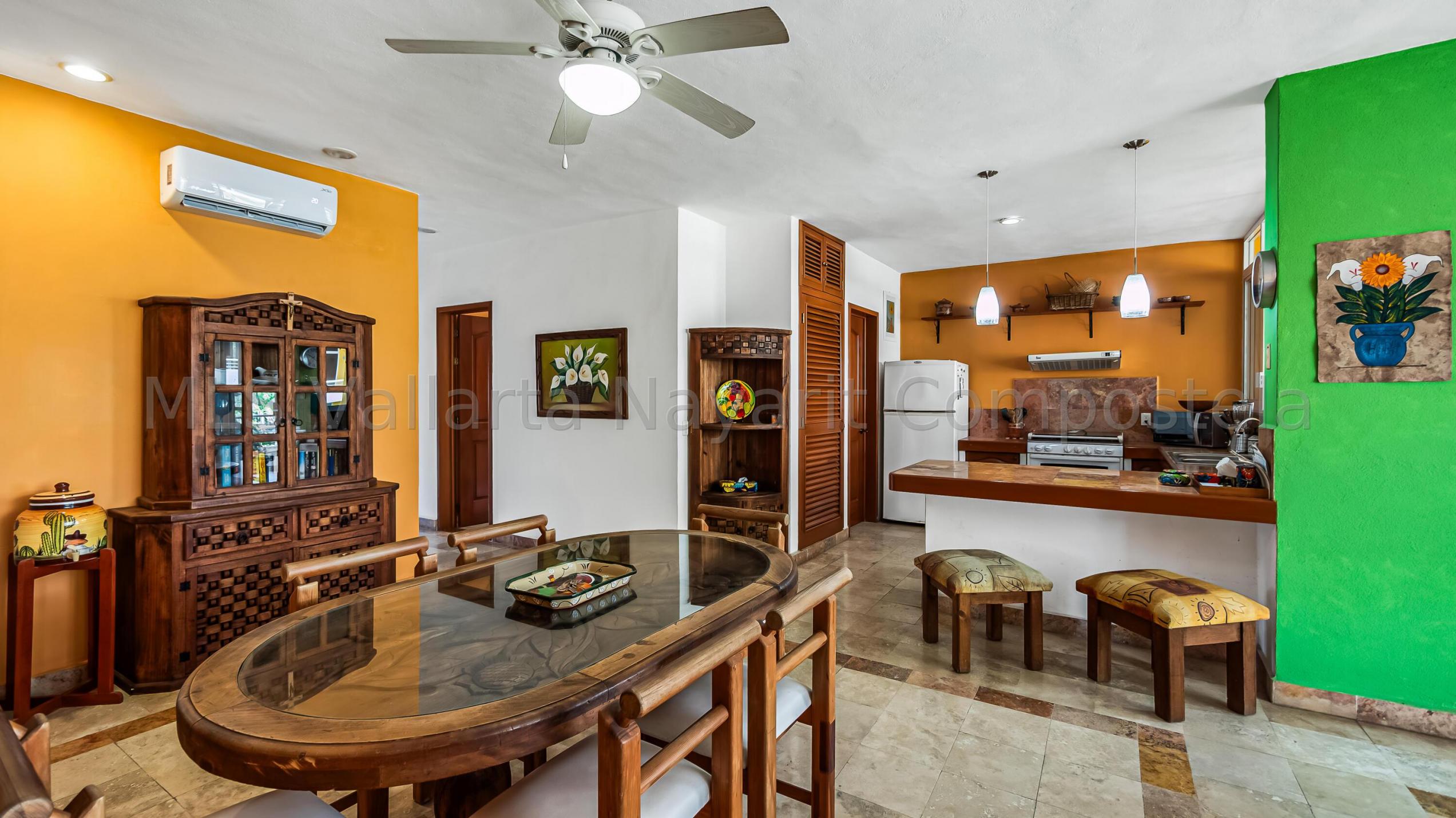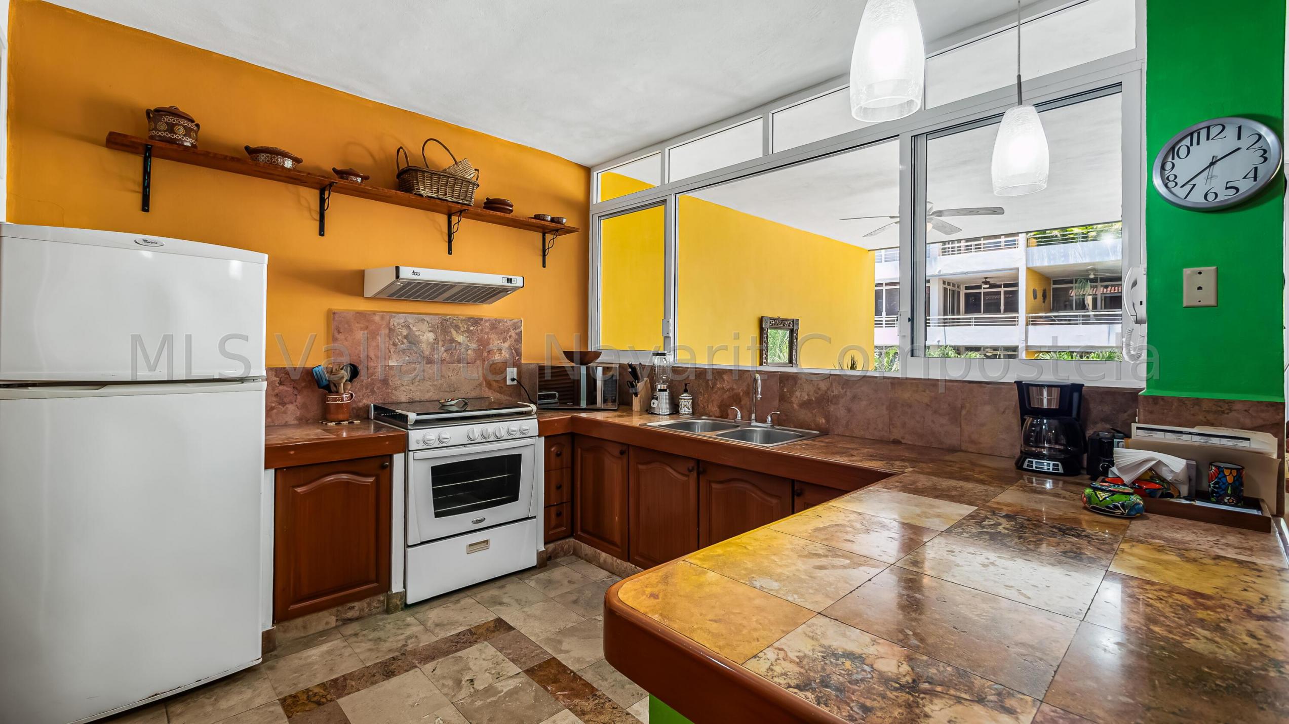 ENGLISH click More. Amplio Condominio de 2 Recamaras - A una Cuadra de la Playa Bucerias! Descubra su paraiso en este condominio de 2 recamaras y 2 banos con gran balcon, idealmente ubicado a solo una cuadra de la playa de Bucerias. Disfrute de las comodidades de la piscina, cascada, gimnasio, y una terraza en la azotea con impresionantes vistas al mar y a la montana, seguridad 24-7, portabicicletas, y en el sitio admin. Nota: no hay ascensor, pero es solo el segundo piso. Totalmente amueblado, este condominio esta listo para mudarse con techos altos, e incluye una plaza de aparcamiento cubierto. Perfecto como residencia permanente, casa de vacaciones, o propiedad de inversion, este condominio esta a pasos de la playa, supermercados, restaurantes, senderos y mucho mas.