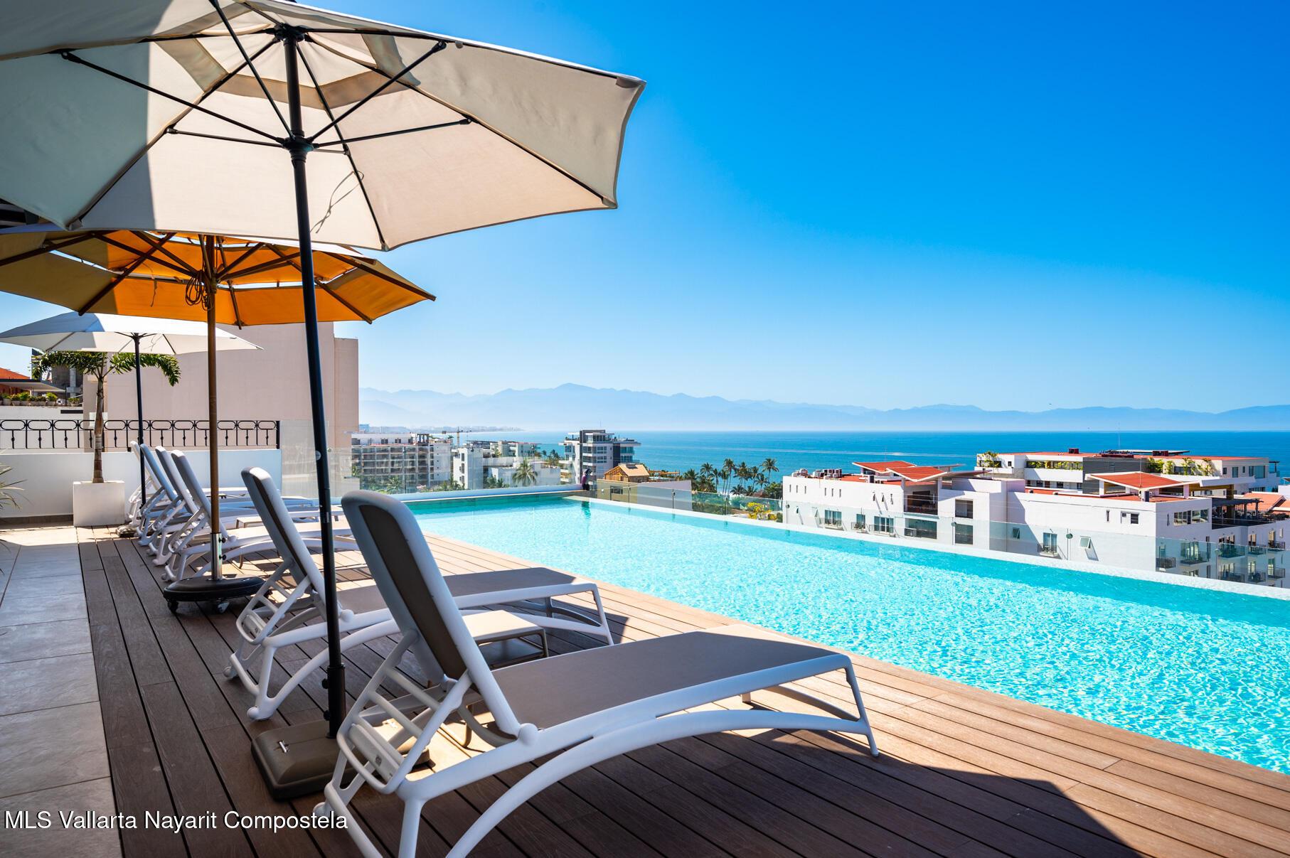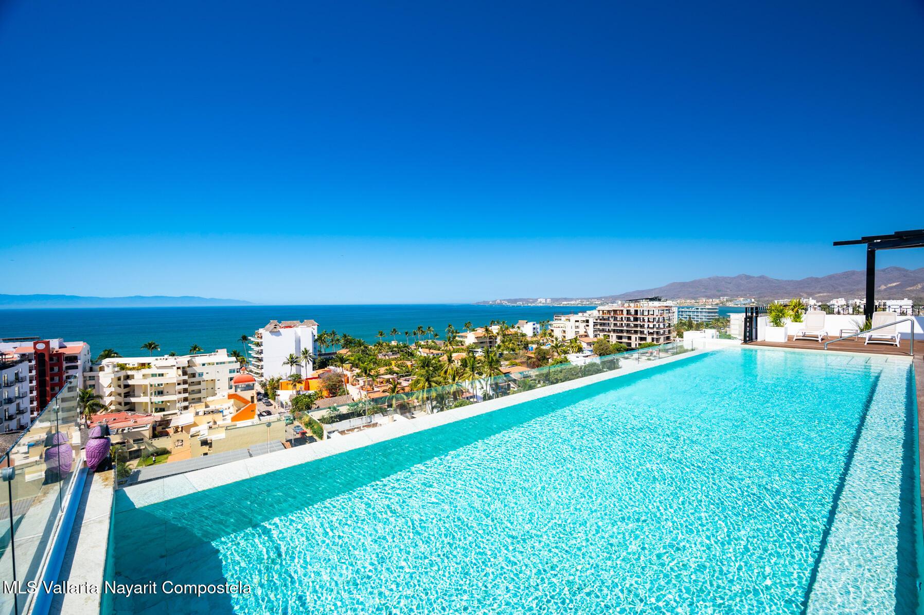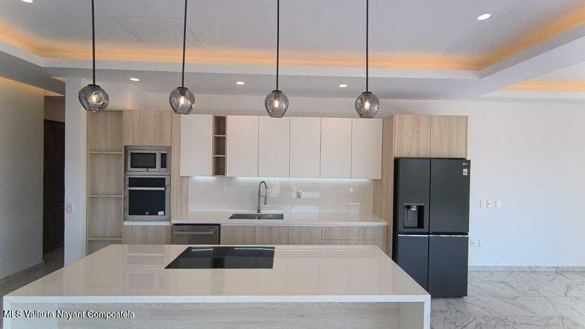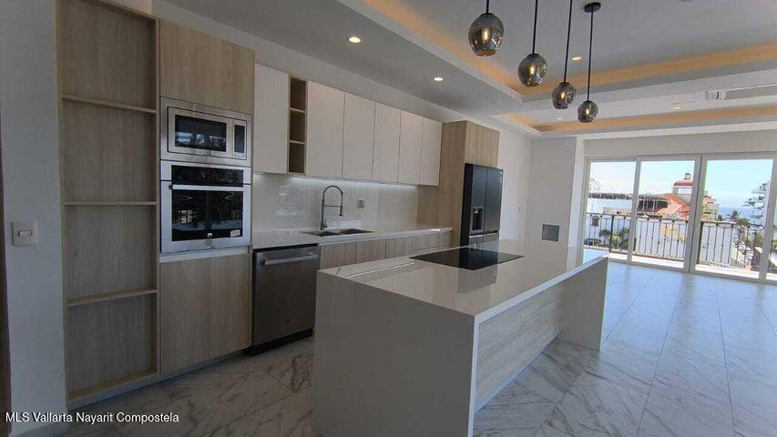 Beautiful New building, ready to move in, located in the Zona Dorada of picturesque Bucerias, only 2 blocks from the beautiful swimmable beach and walking distance to many restaurants, shopping and art galleries. This corner unit is very spacious, with beautiful natural light and ventilation, featuring Italian kitchens and includes refrigerator, dishwasher, cooktop, oven and microwave. An underground parking and storage locker are also included. Roof top amenities have spectacular views to the ocean and the whole bay, enjoy the Infinity salt water heated pool, Gym and BBQ area. Official prices are in dollars.