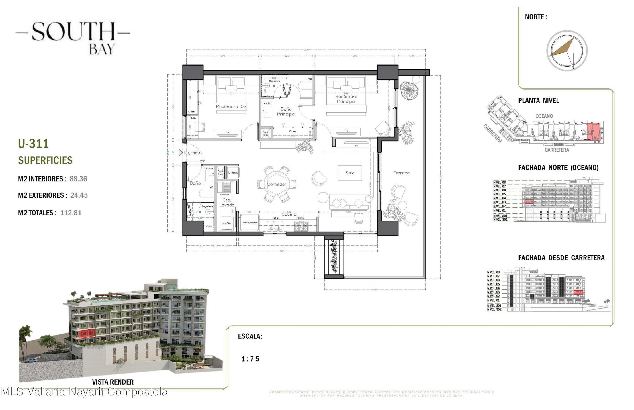 South Bay es un nuevo y exclusivo desarrollo ubicado en el corazon de la Zona Romantica, a pocos pasos de playas, restaurantes, galerias y vida nocturna. El proyecto contara con 65 condominios con vistas y en diversas configuraciones: unidades de 1 recamara, 1 recamara + flex, 1 recamara + den y 2 recamaras, todas con 2 banos completos. Con amenidades de primer nivel que incluyen:*Estacionamiento y bodegas disponibles para la mayoria de las unidades (con costo extra)*Alberca con vistas panoramicas en la azotea con terraza para asolearse*Gimnasio, area para mascotas y cancha de padel unica en la zona*Elevadores, acceso controlado y elegante lobbyUbicado sobre una via principal, South Bay combina accesibilidad, amenidades modernas y estilo de vida, siendo