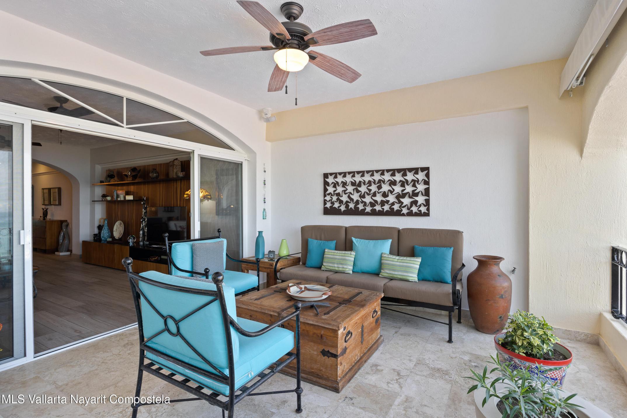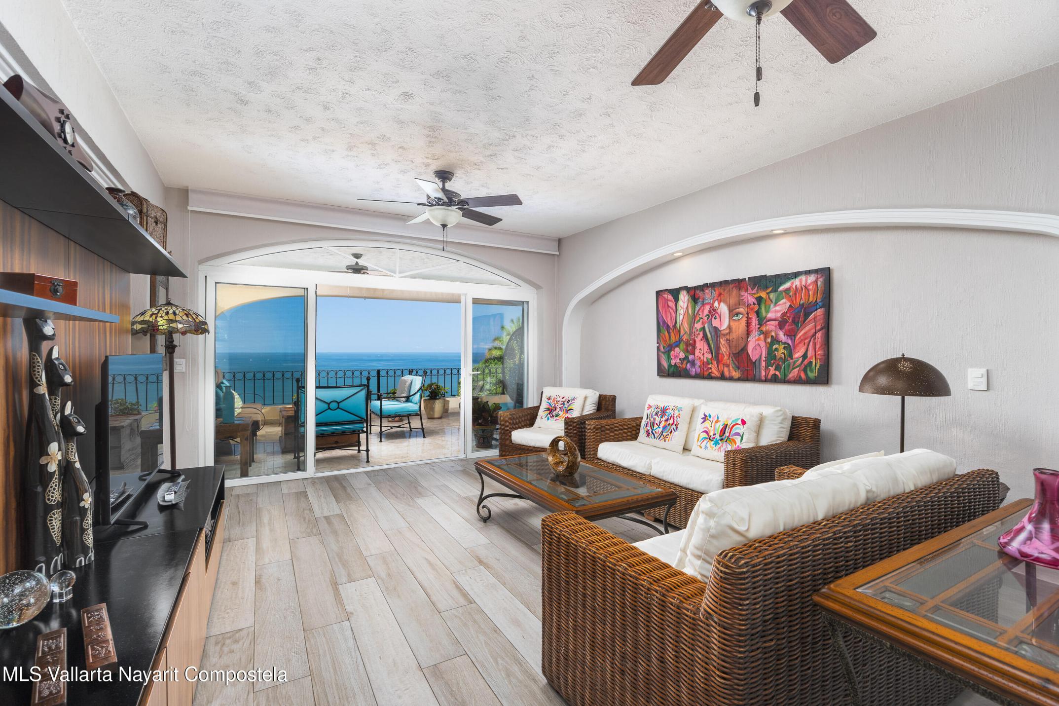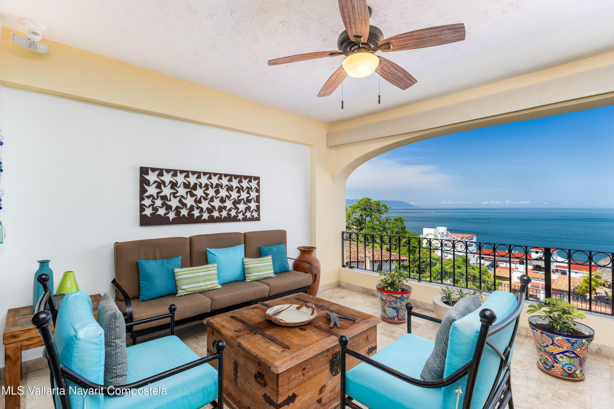 Condominium Estrella del Mar in Amapas is a 2 bed, 2 bath residence blending comfort, art, and stunning bay views. Fully furnished with exceptional pieces and crafted with care, it opens to a sizeable terrace where sunsets paint the horizon. Minutes from beaches and Puerto Vallarta's Old Town.
