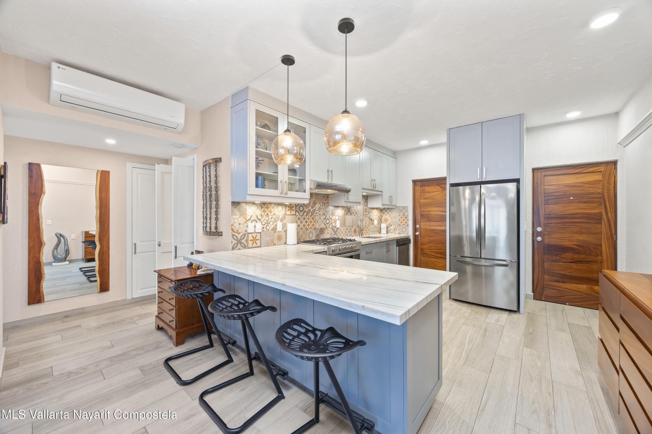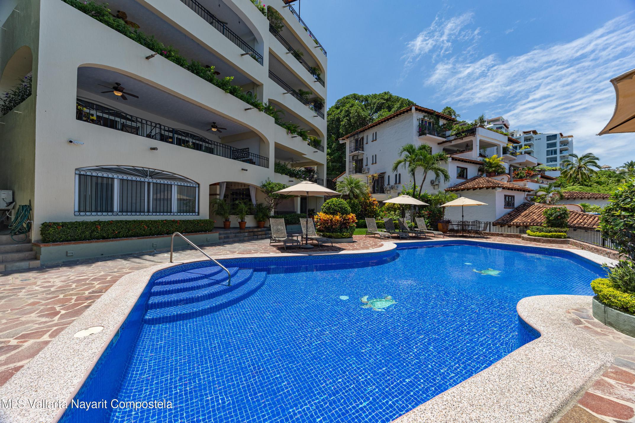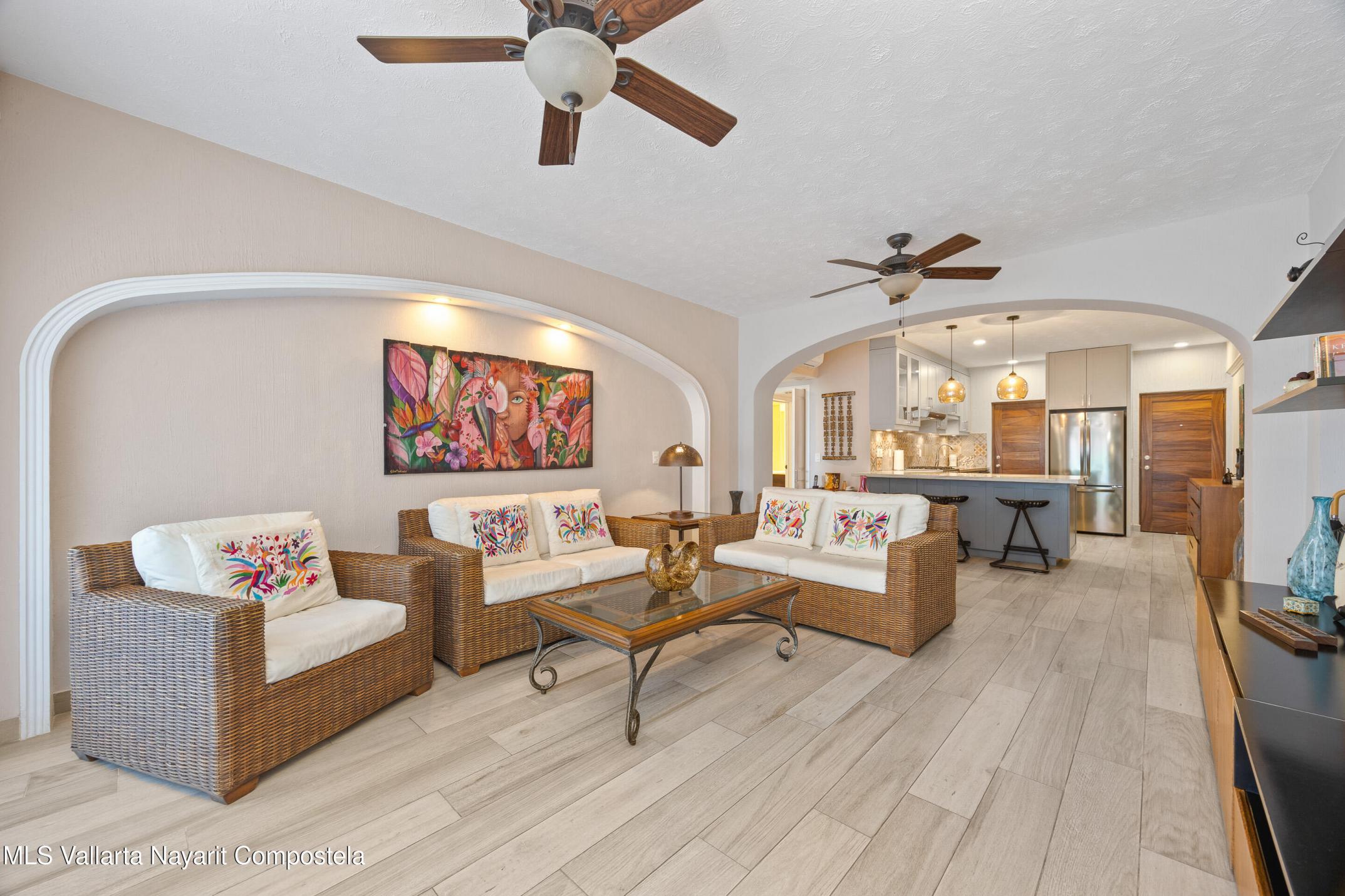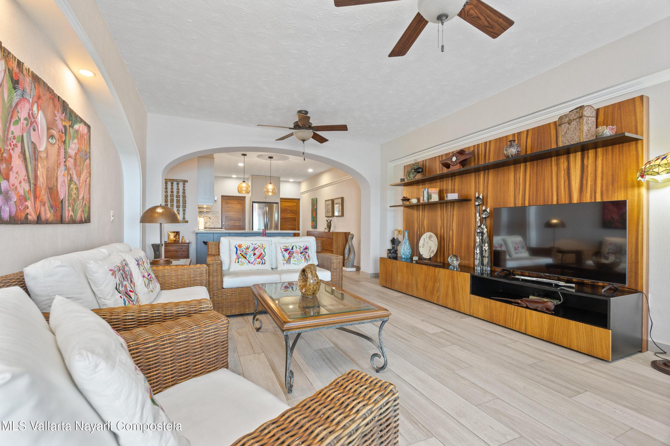 Condominium Estrella del Mar in Amapas is a 2 bed, 2 bath residence blending comfort, art, and stunning bay views. Fully furnished with exceptional pieces and crafted with care, it opens to a sizeable terrace where sunsets paint the horizon. Minutes from beaches and Puerto Vallarta's Old Town.
