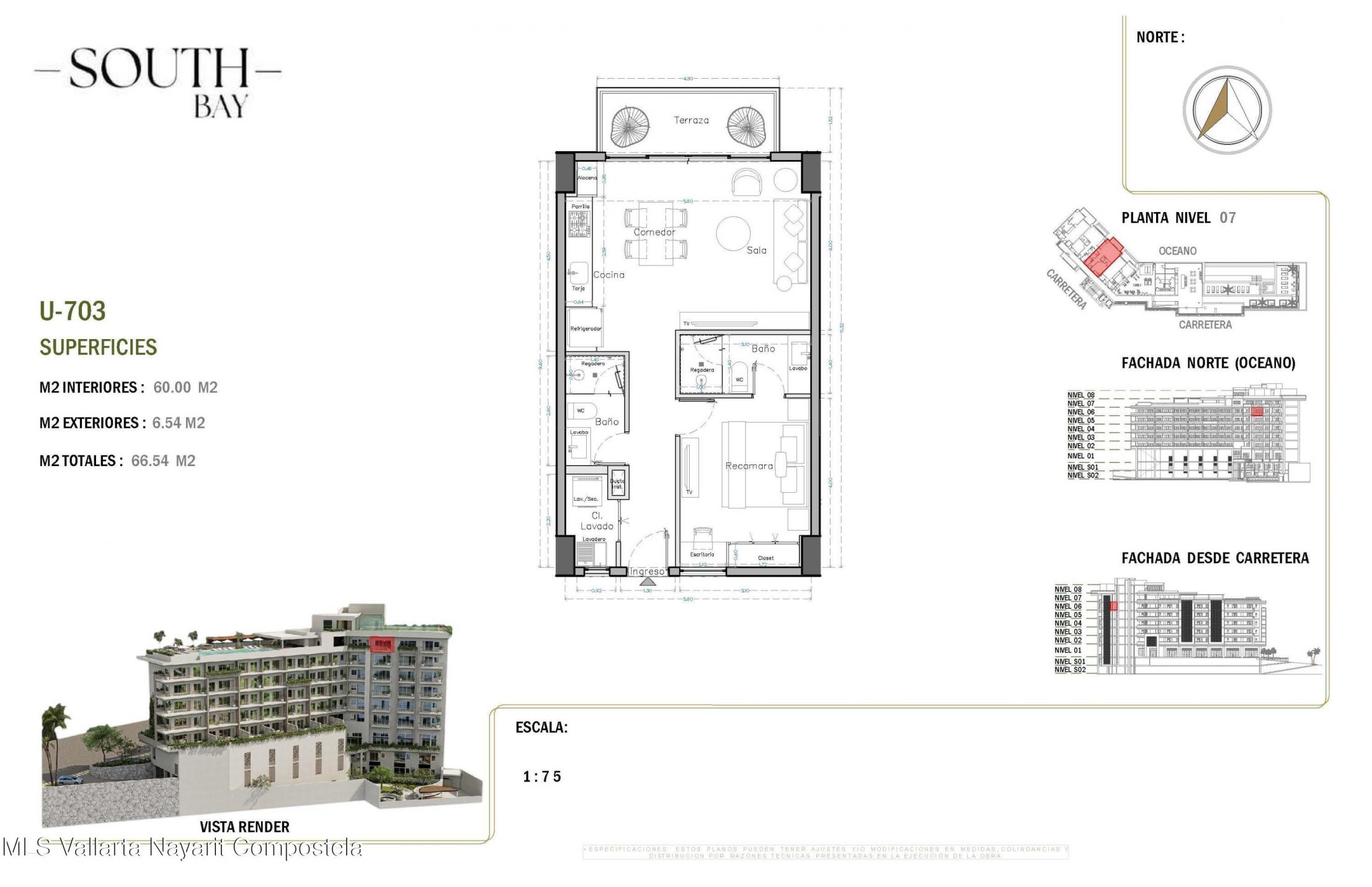 South Bay es un nuevo y exclusivo desarrollo ubicado en el corazAn de la Zona Romantica, a pocos pasos de playas, restaurantes, galerias y vida nocturna. El proyecto contara con 65 condominios con vistas y en diversas configuraciones: unidades de 1 recamara, 1 recamara + flex, 1 recamara + den y 2 recamaras, todas con 2 banos completos. Con amenidades de primer nivel que incluyen:*Estacionamiento y bodegas disponibles para la mayoria de las unidades (con costo extra)*Alberca con vistas panoramicas en la azotea con terraza para asolearse*Gimnasio, Area para mascotas y cancha de padel Unica en la zona*Elevadores, acceso controlado y elegante lobbyUbicado sobre una via principal, South Bay combina accesibilidad, amenidades modernas y estilo de vida,