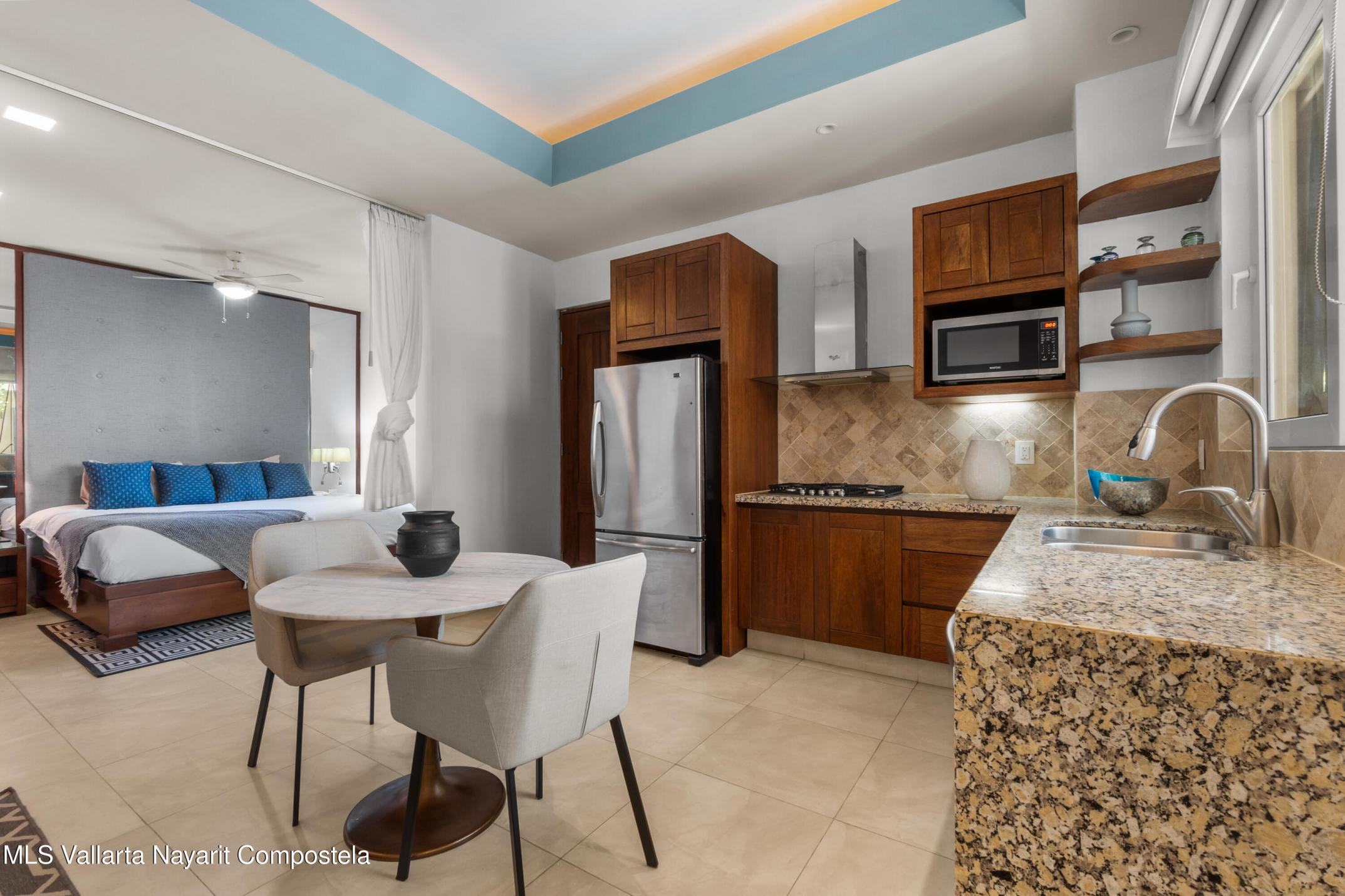 Discover this charming fully furnished studio located within the exclusive V177 condominium, right in the heart of Puerto Vallarta's vibrant Romantic Zone. Just one block from the iconic Los Muertos Beach, you'll be steps away from the best nightlife, fine dining restaurants, weekly farmers' markets, and a wide variety of cultural and tourist attractions.Perfect for those seeking style, comfort, and convenience in a modern space, with the added advantage of being close to everything that makes Puerto Vallarta so special.----- ESPANOL