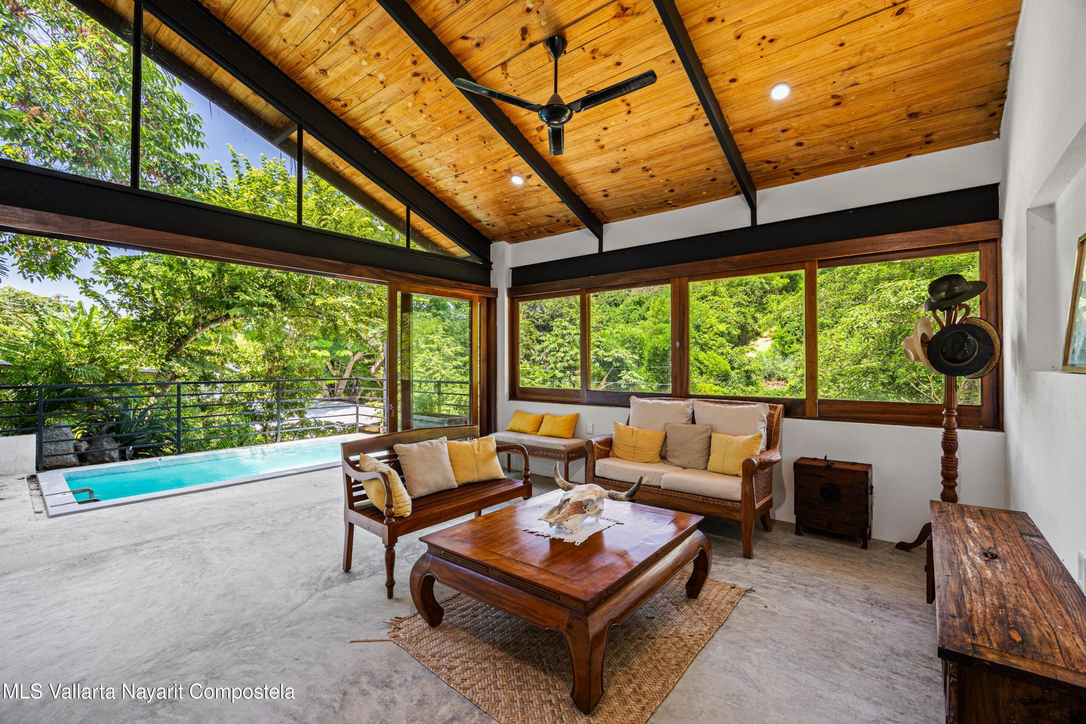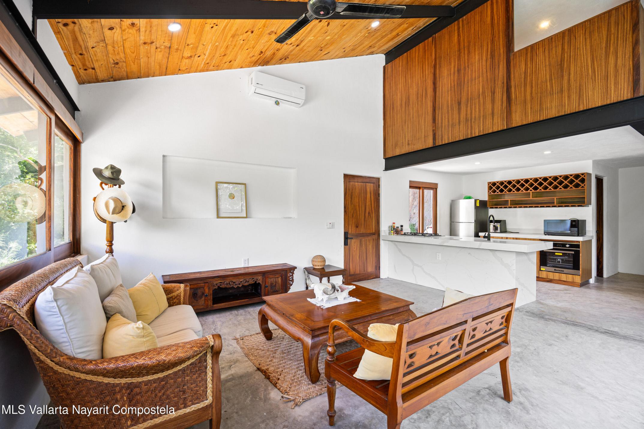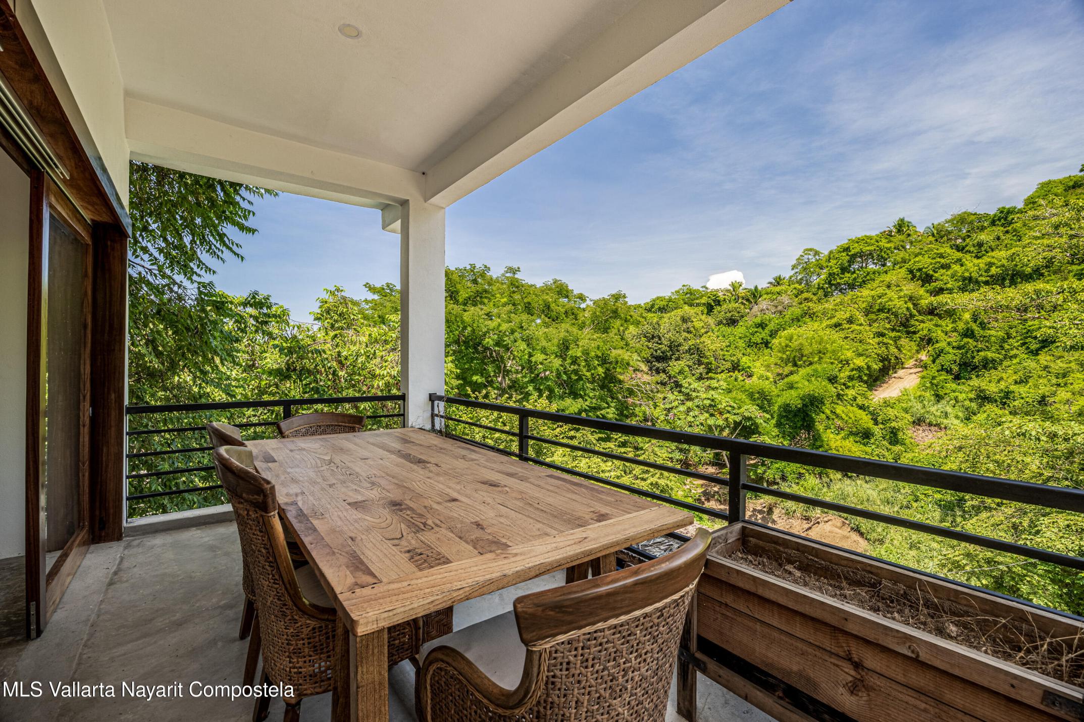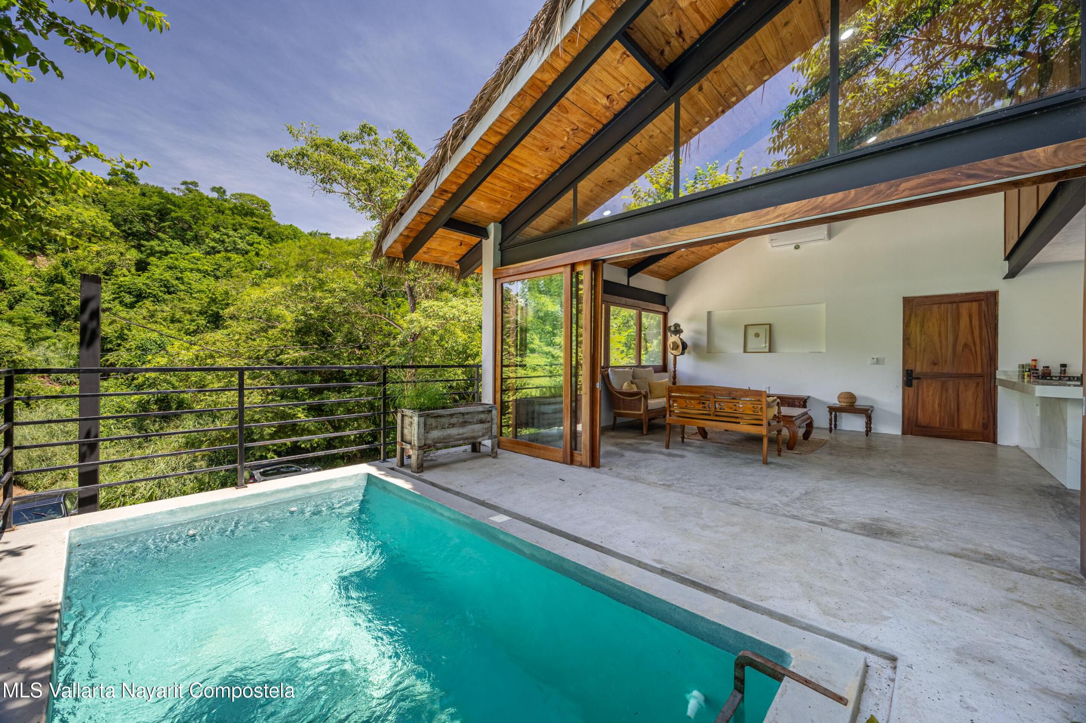 Nawalli Jungle Casitas is a stunning newly built home tucked away on the serene east side of Sayulita. Just a quick 5-minute golf cart ride from the vibrant town plaza and the popular Plaza Nawalli on the north side, this property offers both tranquility and convenience. Set on a 209.17 m lot with approximately 110 m of modern construction spread over three levels, this home is designed for comfort, style, and versatility.The street level features a 2-car garage, storage space, and a laundry area. On the first level, you'll find a bright open living space, a well-appointed kitchen, a refreshing pool, a full bath, and bedroom. The second level offers another bedroom with sweeping jungle views and a full bath.