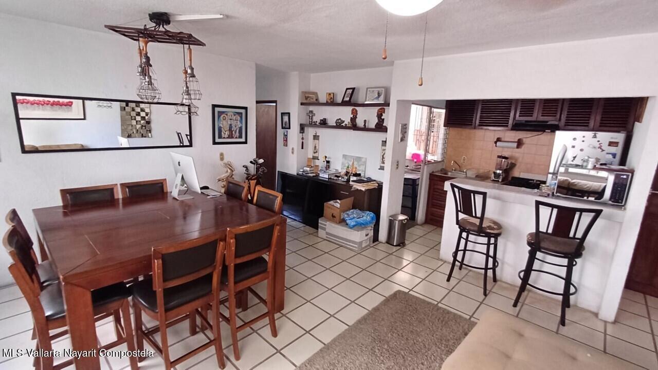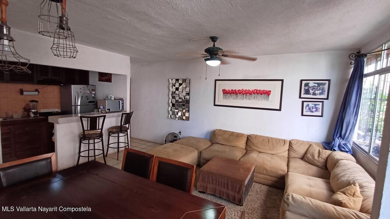 Ubicado en el Fraccionamiento Villas Rio, a solo una cuadra de Av. Grandes Lagos y a tres de Av. Francisco Villa, esta unidad se encuentra en primer nivel, dentro de un conjunto con acceso controlado.En su interior ofrece estancia de sala-comedor, cocineta integral de parota con barra desayunador, dos recamaras con espacio para closet, bano completo y area de servicio. Sus espacios son amplios y con gran potencial para hacer mejoras y modernizar al gusto.Por su ubicacion estrategica se tiene a pocos minutos restaurantes, centros comerciales, tiendas de conveniencia, escuelas y las principales avenidas de la ciudad. Ademas, a solo 15 minutos puedes disfrutar de Marina Vallarta y la popular Playa de los Muertos.