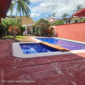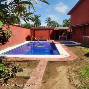 Beautiful compound/home close in on the Eastside of Bucerias. This homewas the gathering place for a large Mexican family for many years. Thematriarch now lives with family in the U.S. and has decided to sell. Thehouse has multiple everything including 7 BIG bedrooms, 4 BIG bathrooms,multiple terraces off upstairs rooms and extensive grounds. Everything isincluded in the sale. The double lots is also very large and another adjoiningproperty offers extensive land for development. That listing number of thatproperty is forthcoming. 3 blocks to the 200 highway and a 10-12 minutewalk to the beach.