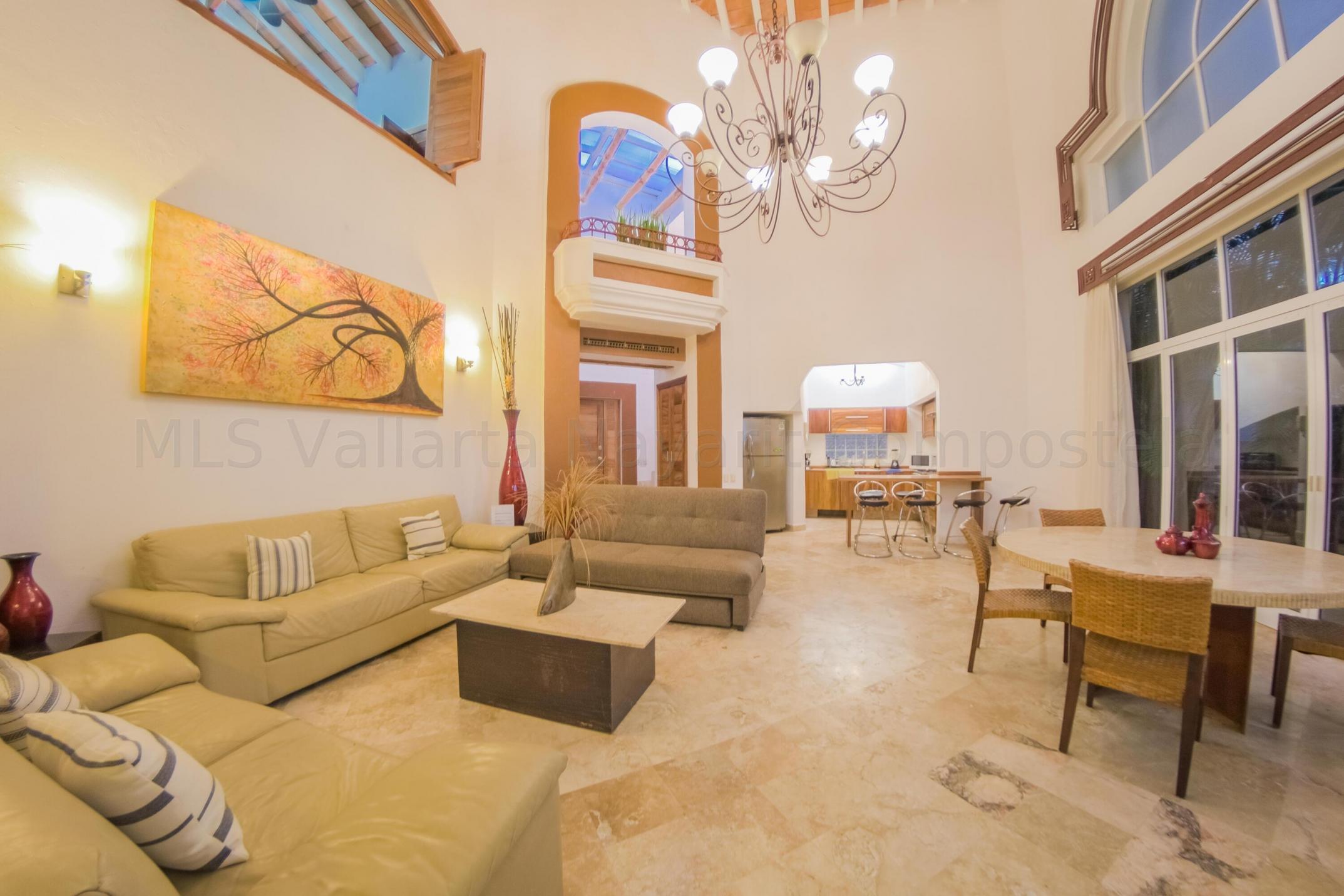 f you're looking for a house as an investment or to retire in a quiet residential development, well, look no further, this house is located in the most sophisticated community surrounded by big trees, coconut trees with beautiful gardens that make part of an exclusive and relaxing living VALLARTA GARDENS offer a lot of amenities such as HOT TUB, SPA, BEACHFRONT GYM, RESTAURANTS, BAR, 4 SWIMMING POOL, BEACH CLUB, VOLLEYBALL, PICNIC AREA, SECURITY 24 HRS.FEATURESThis turnkey house with a double high ceiling has 3 bedrooms, 2.5 bathrooms, a covered garage attached with remote control access, living and dining room with big windows that combine a unique architectural concept with lots of natural light, Marmol floor, concrete walls, parotta wood.