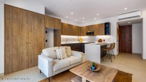 English below. Ya construido y listo para ti! Bonita apartamento de 1 recamera con encimeras de cocina de cuarzo y terraza. Desarrollo boutique de 15 condominios, piscina infinita climatizada en la azotea con vistas panoramicas, gimnasio al aire libre, ascensor, lobby, seguridad 24-7. 60 pasos de la playa, 2 cuadras del centro, 1 cuadra de la Plaza Los Amores. Already built and ready for you! Gorgeous 1 bedroom with quartz kitchen countertops and great balcony. Boutique development 15 condos, rooftop heated infinity pool with panoramic views, open air gym, elevator, 24-7 security, lobby, secured entry. 60 steps to the beach, 2 blocks to downtown, 1 block to Los Amores Plaza.