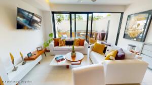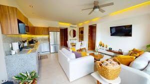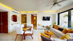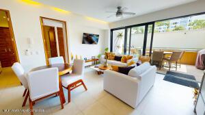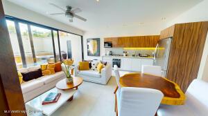 ***ENGLISH BELOW***La Unidad 102 en MINA Residences es un departamento de 2 recamaras y 2 banos ubicado en la Zona Dorada de Bucerias. La unidad cuenta con 127.55 m de espacio habitable bien disenado, ofreciendo privacidad, comodidad y abundante luz natural.La sala y el comedor de concepto abierto se conectan de manera fluida con una cocina totalmente equipada. La recamara principal incluye bano privado, y ambas recamaras son de generosas dimensiones.Esta unidad cuenta con un amplio patio con piscina privada y asador, ofreciendo un espacio exterior exclusivo. Los residentes tambien tienen acceso a la piscina infinita en la azotea y a las areas comunes del edificio, en un entorno seguro y de baja densidad.