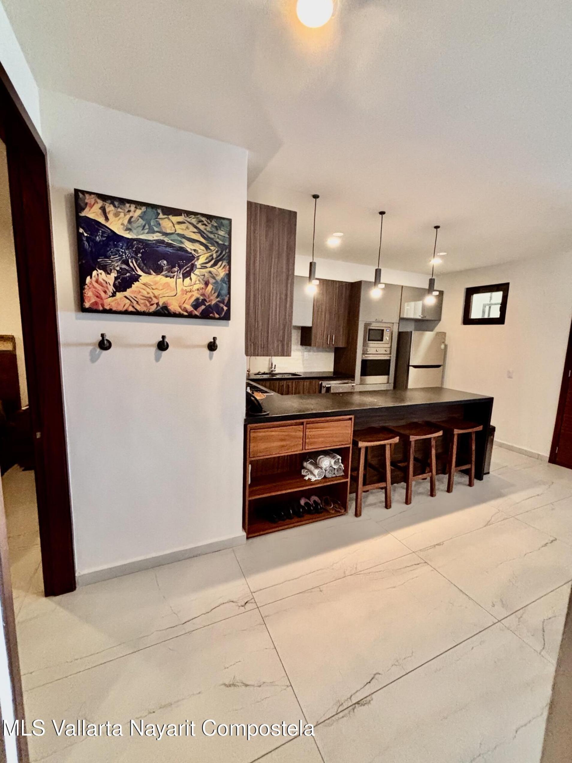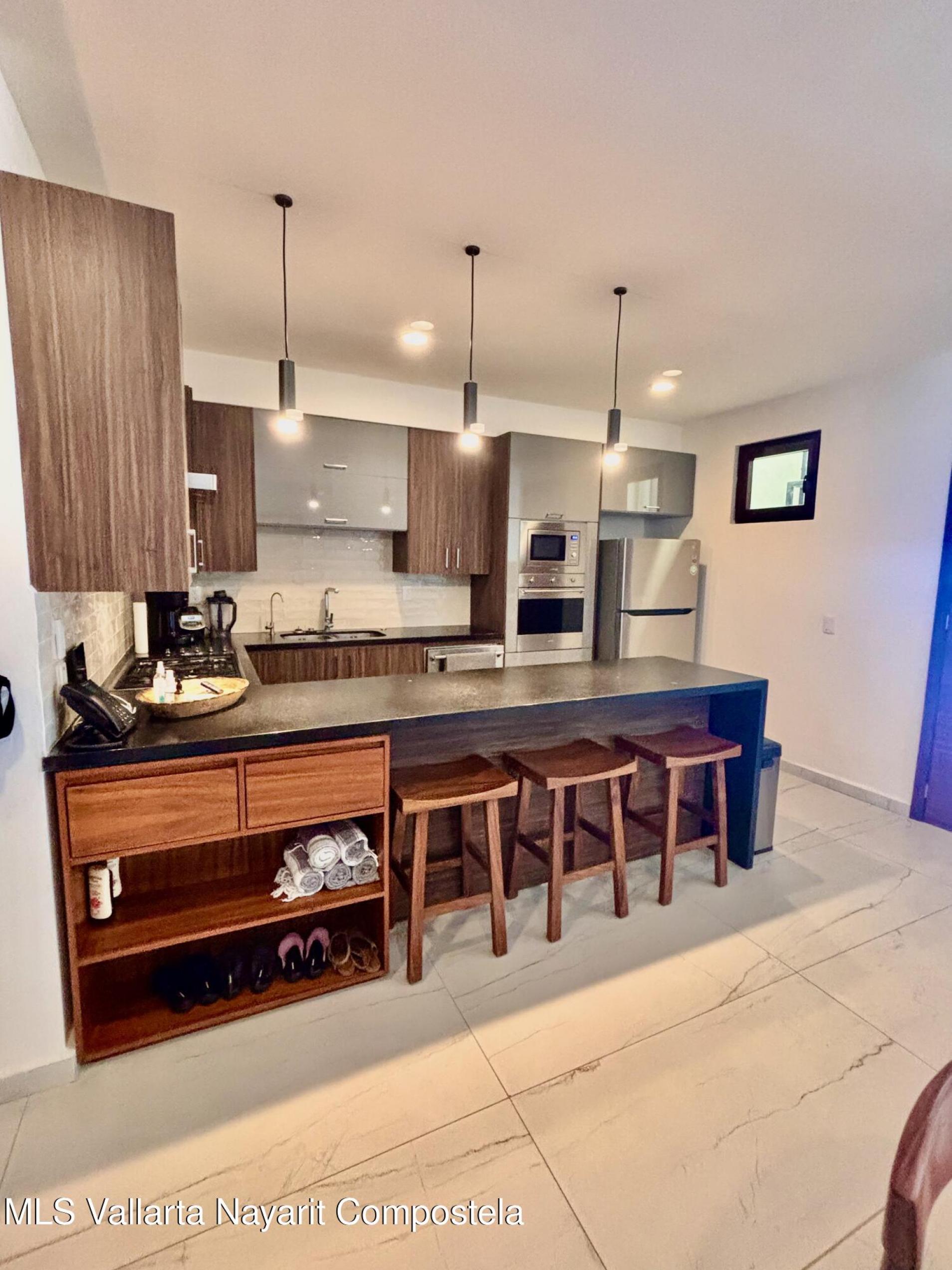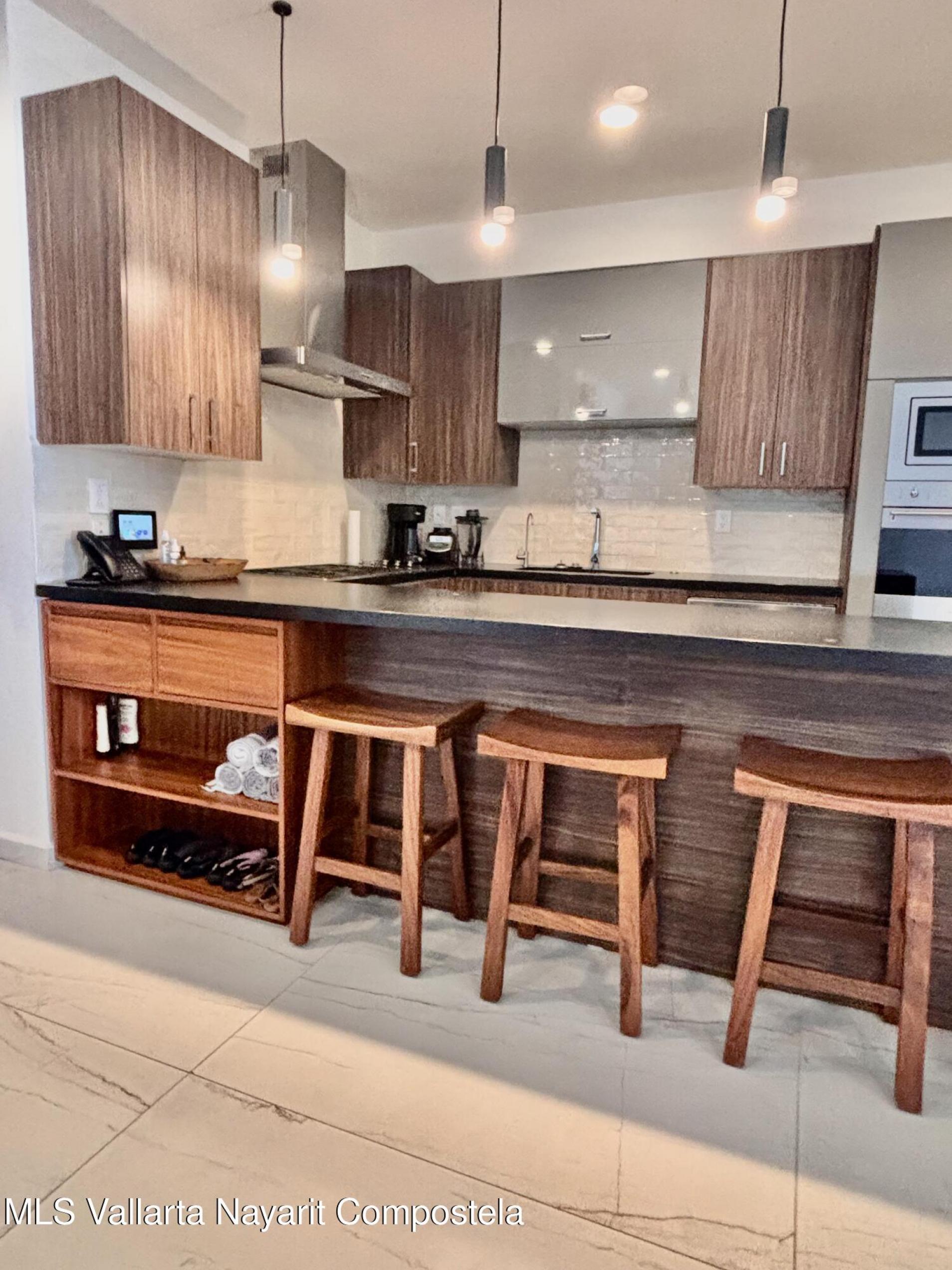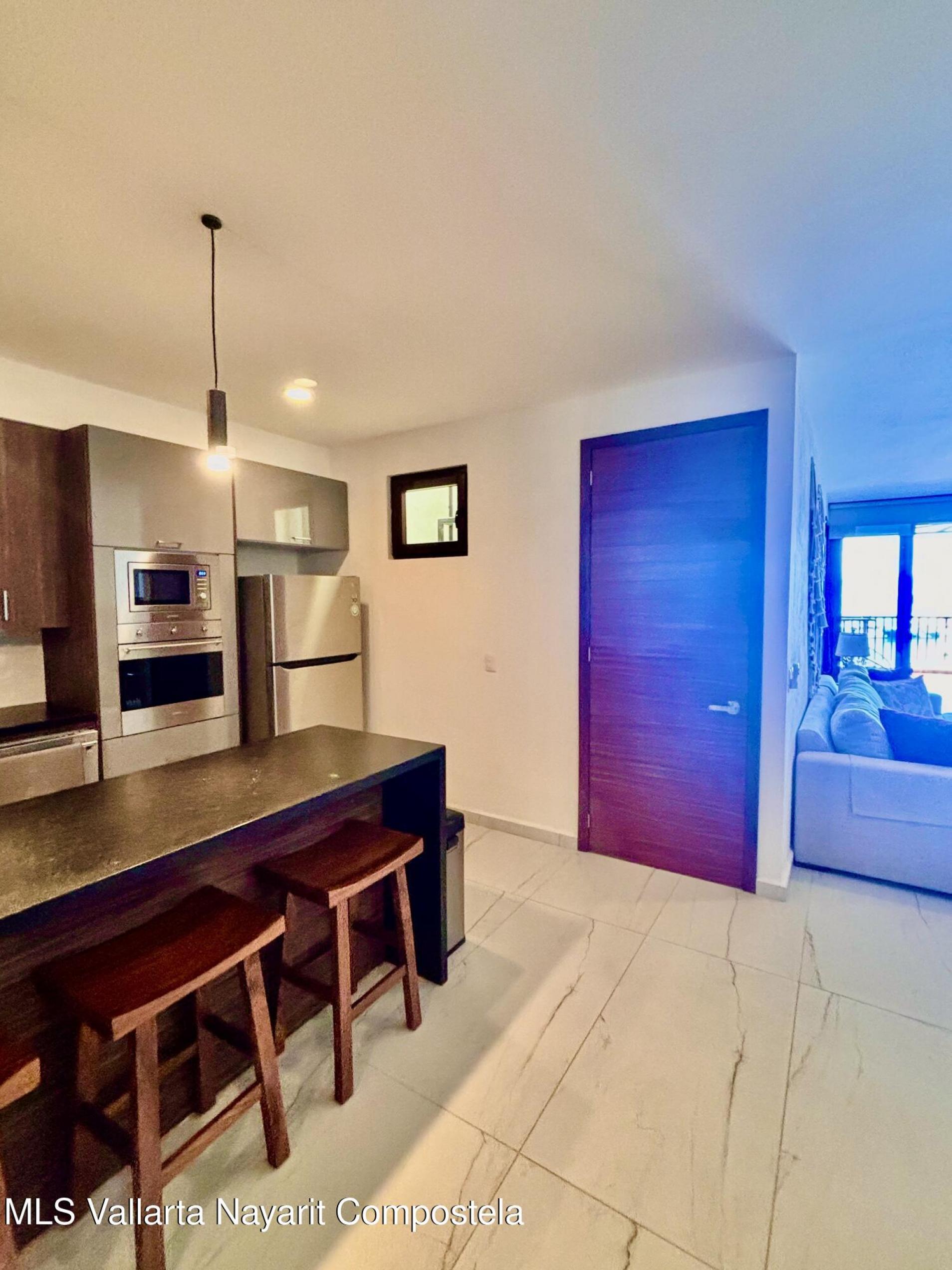 Welcome to your ultimate oceanfront sanctuary in La Cruz, Nayarit! This exquisite 2-bedroom, 2-bathroom condo isn't just a home; it's an invitation to a unique lifestyle, where the rhythm of the waves becomes your daily soundtrack and the marina's vibrant life is right at your doorstep.Nestled on the 4th floor, this fully furnished gem offers captivating panoramic views that stretch as far as the eye can see. Imagine waking up to the sun rising over the ocean, enjoying your morning coffee on the balcony as you watch the boats gently sway in the marina below.Outfitted with high-end kitchen appliances and leather granite countertops this kitchen is perfect for creating culinary mastery, or escape onto the terrace and use your BBQ for delighting your guests.