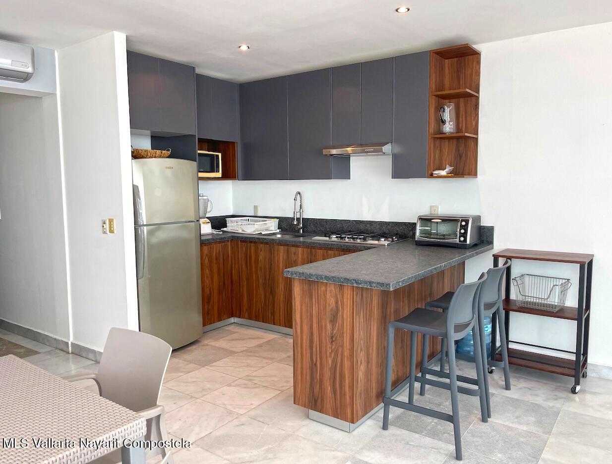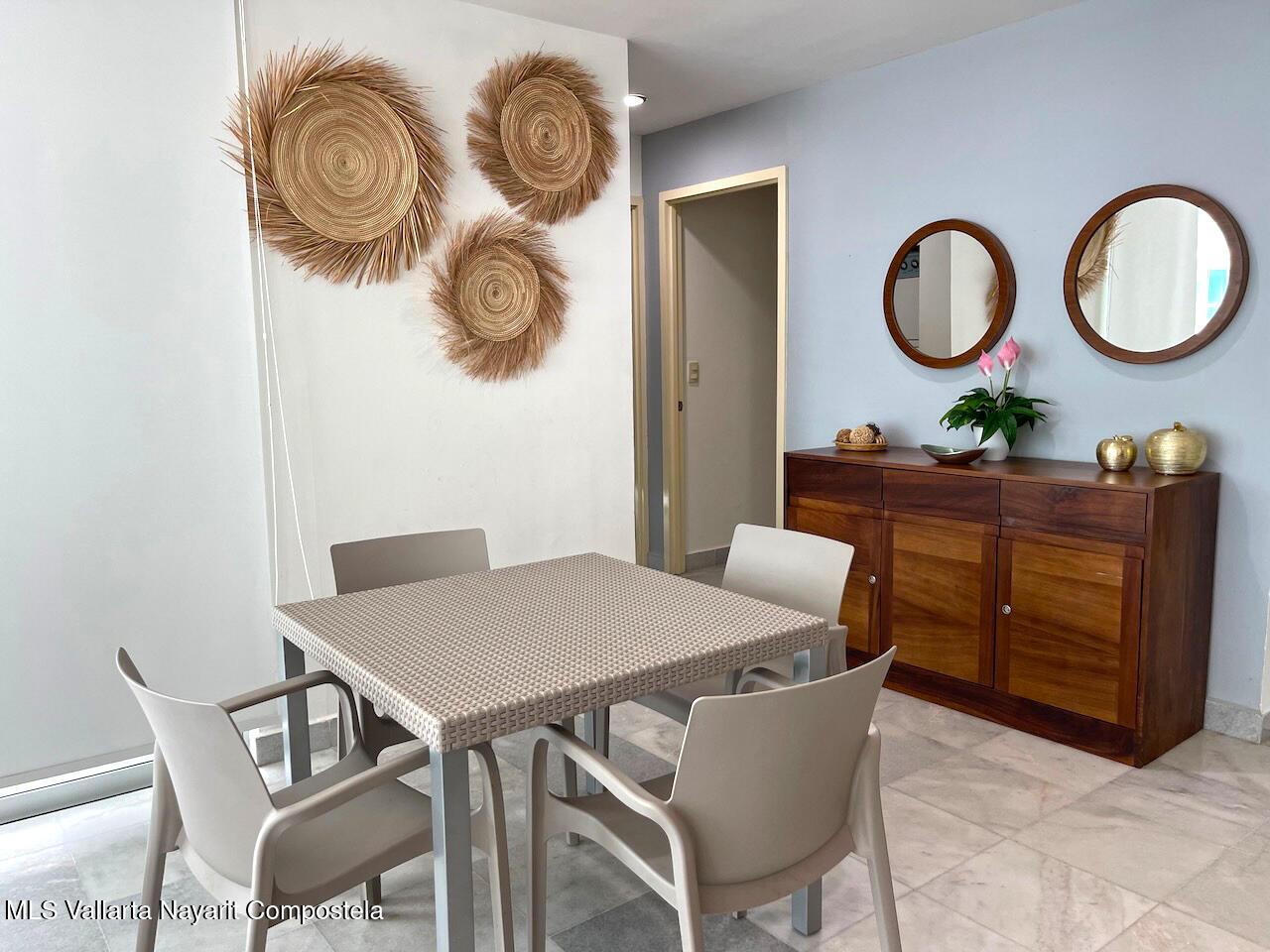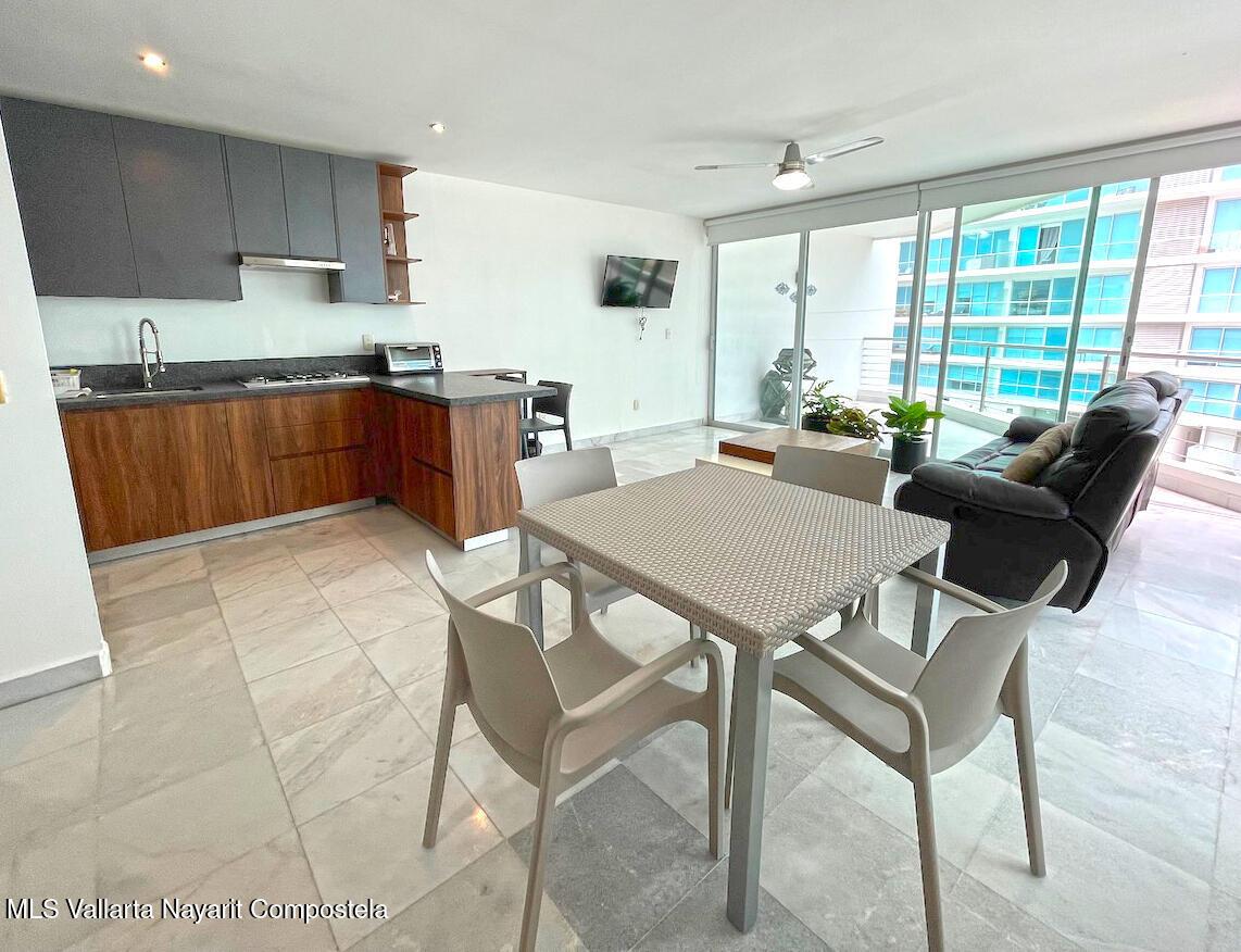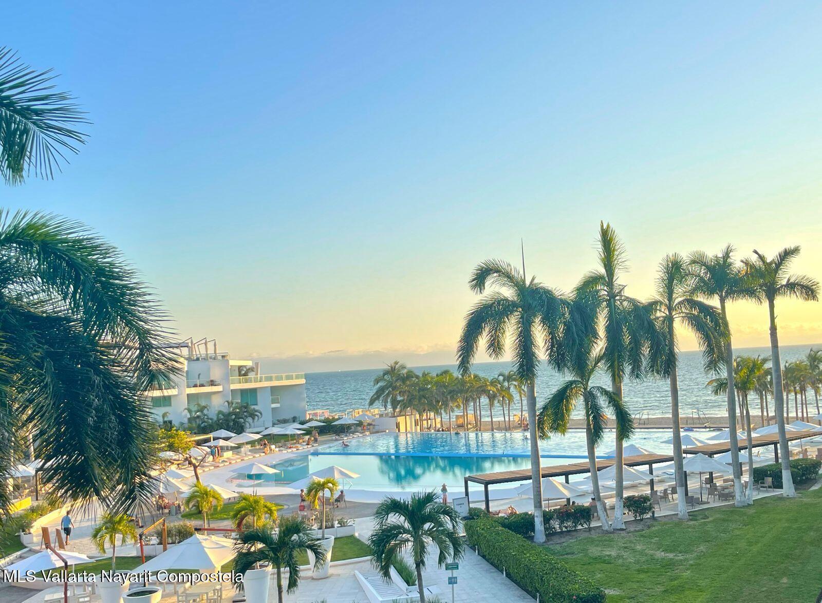 On the pristine beach of Nuevo Vallarta in Bahia de Banderas is this Beautiful beachfront 2 bedroom 2 bath condo, set on the long white sand beaches of Flamingos, Nuevo Vallarta in Condo Aria Ocean. The calm surf invites you to come take a dip in the warm water or simply lounge around one of the two large infinity pools or the smaller pool set right on the sand. The beautiful grounds filled with palm trees, plants, flowers and a large fountain make this a truly calming space. This turnkey condo has been upgraded with a new kitchen and furnishings. Plus the 2 large balconies make for a great outdoor space to rest or have a BBQ.