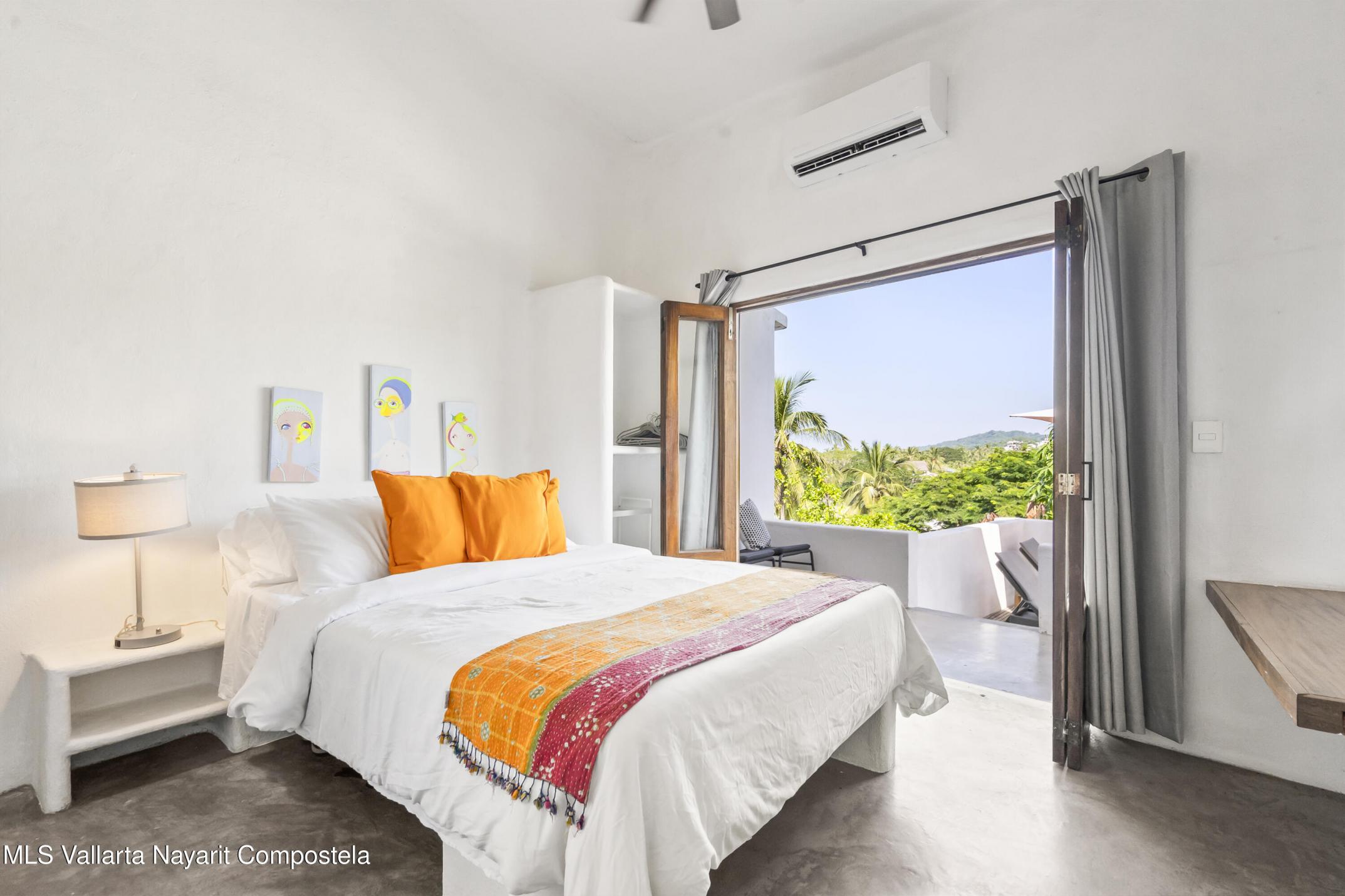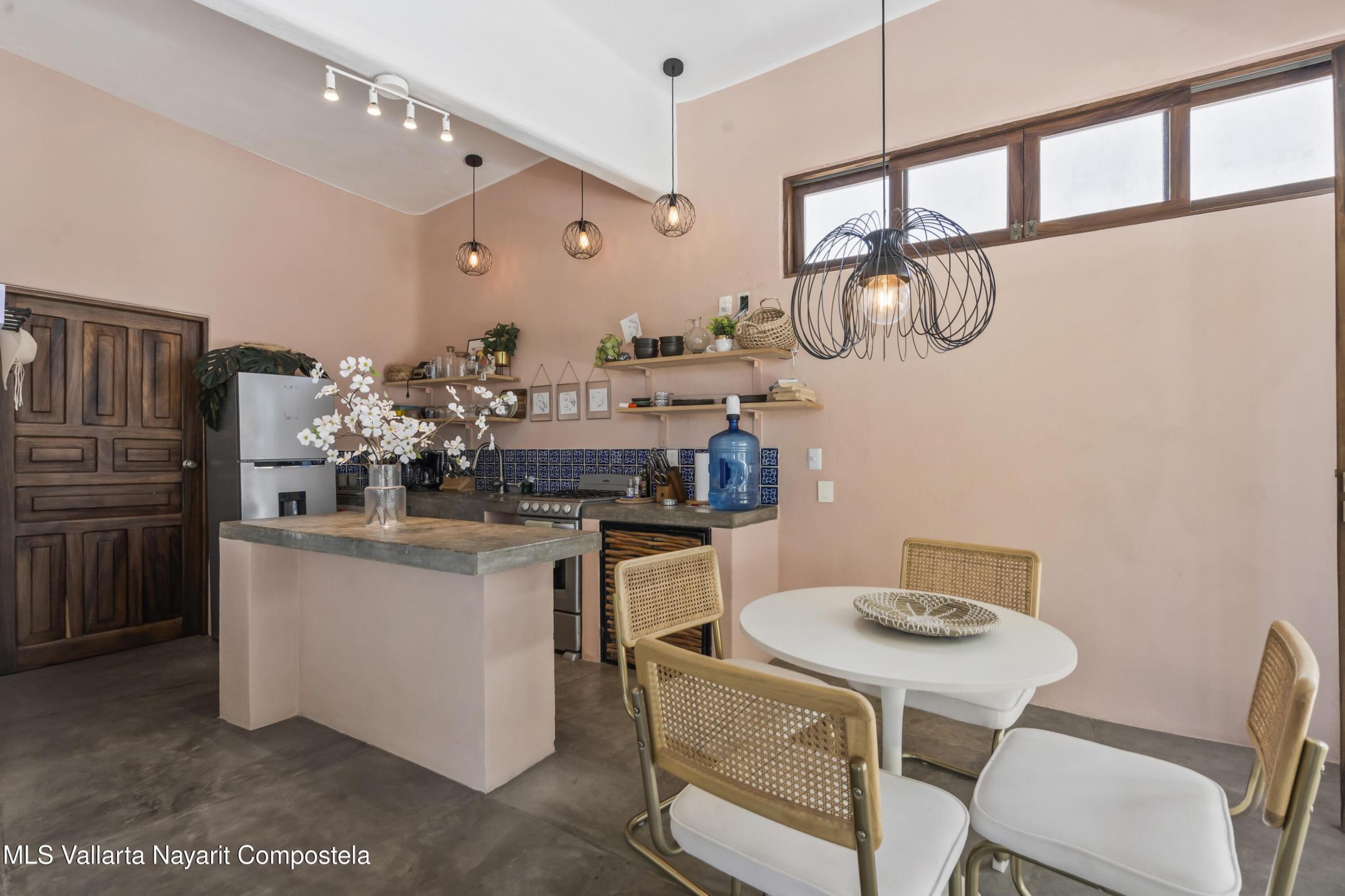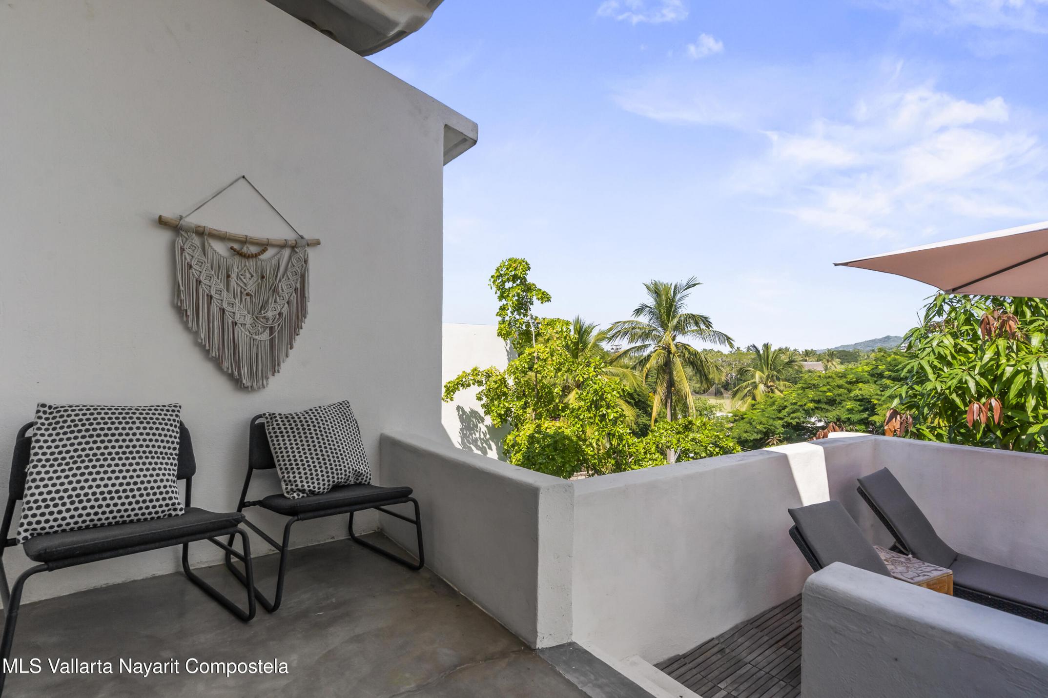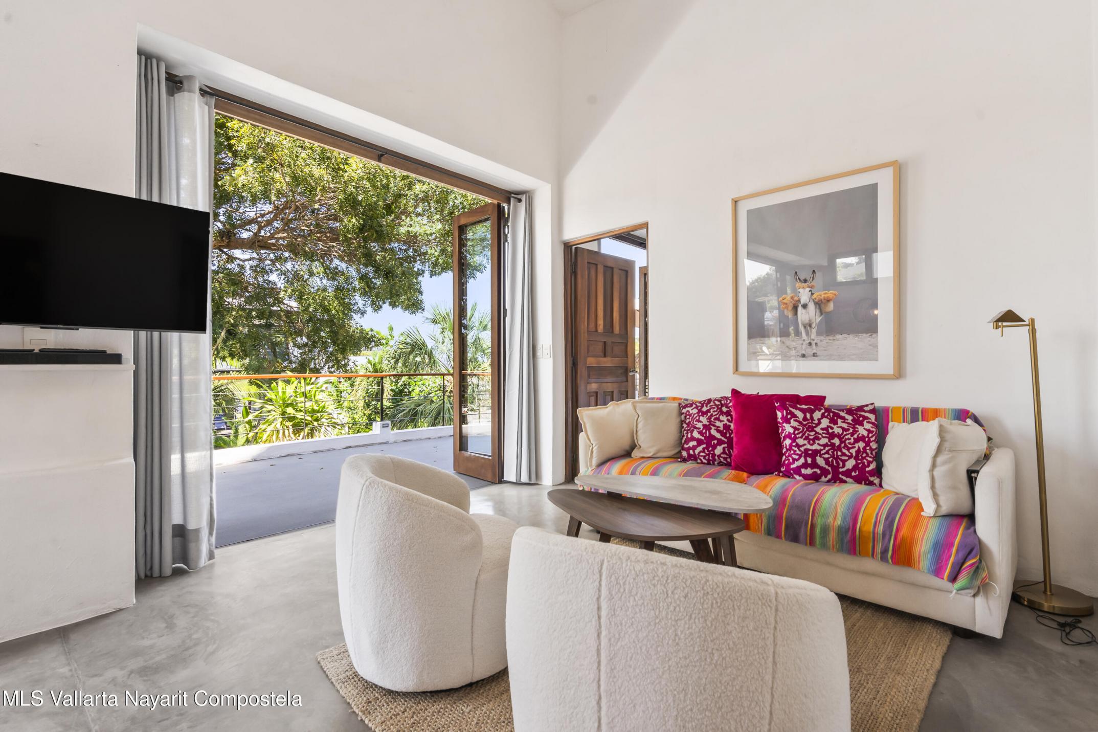 Step into a light and breezy retreat in the heart of Sayulita. This single-level, 2-bedroom, 2-bath condo combines modern design with the relaxed charm of coastal living. High ceilings and an open-concept layout create a spacious, airy feel, while soft coral tones and polished concrete finishes add timeless elegance. Perched among lush tropical trees, the home offers tranquil views of the sparkling pool and the soothing sounds of nature. Enjoy slow mornings with coffee on your expansive patio or dinner al fresco under the stars. Just a two-minute stroll from the town center and beach, this condo offers peaceful seclusion, vibrant Sayulita energy, deeded parking, and strong rental potential.