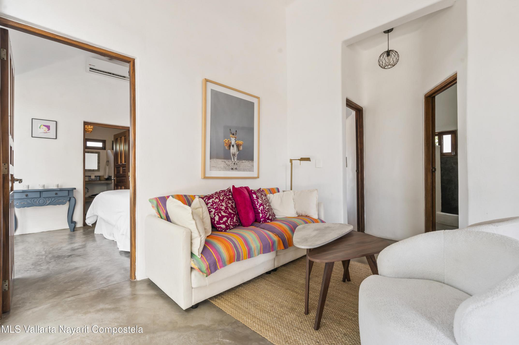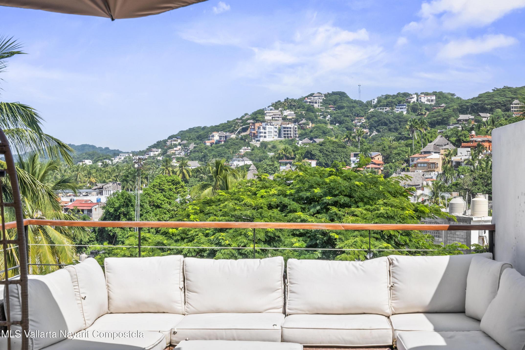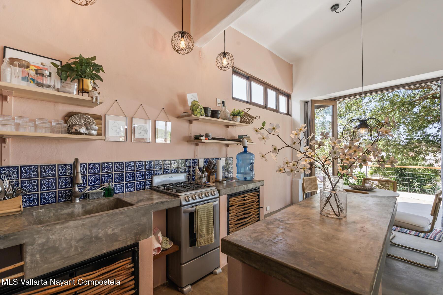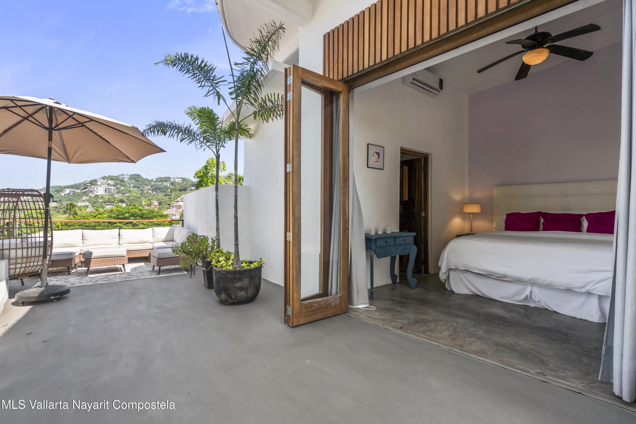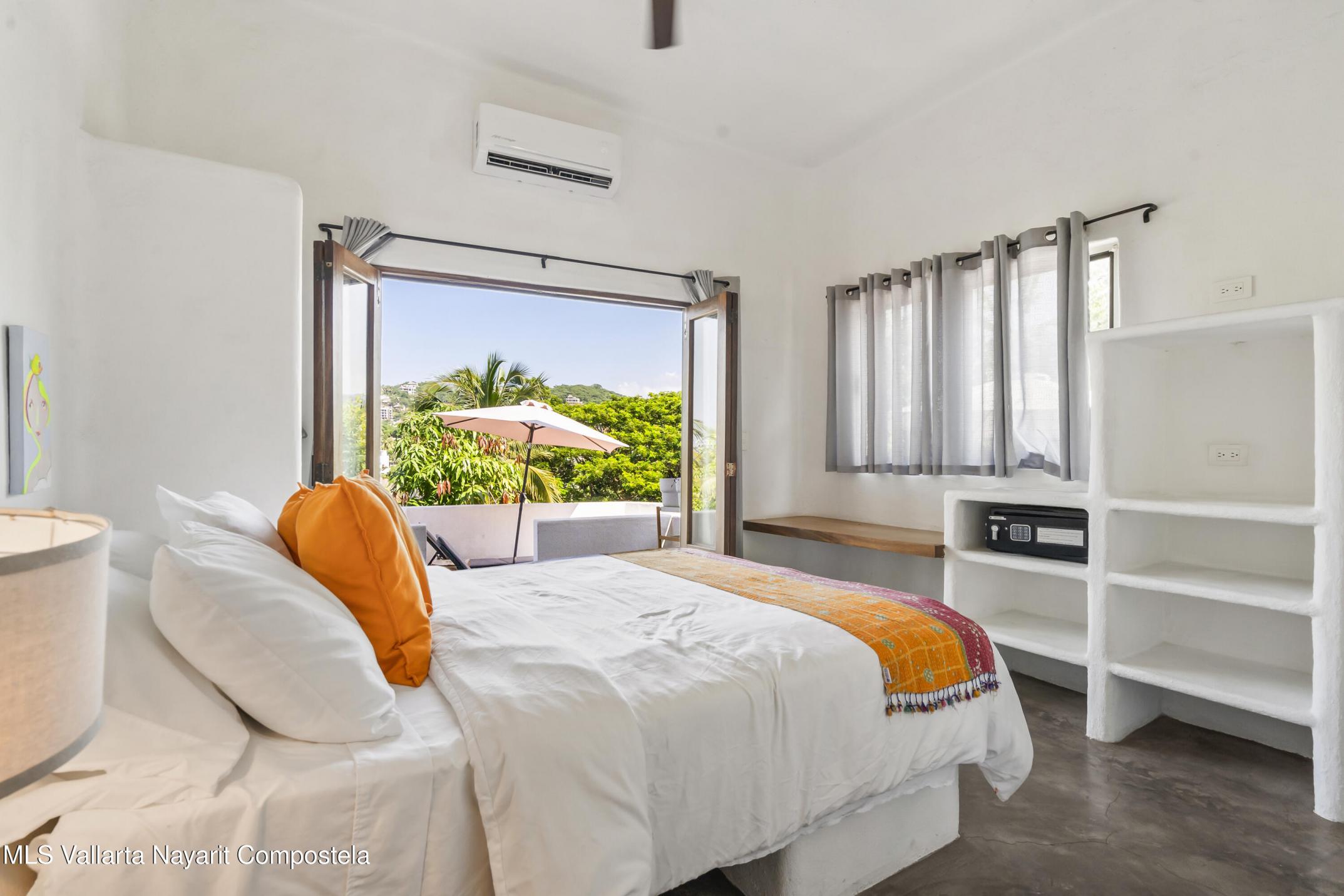 Step into a light and breezy retreat in the heart of Sayulita. This single-level, 2-bedroom, 2-bath condo combines modern design with the relaxed charm of coastal living. High ceilings and an open-concept layout create a spacious, airy feel, while soft coral tones and polished concrete finishes add timeless elegance. Perched among lush tropical trees, the home offers tranquil views of the sparkling pool and the soothing sounds of nature. Enjoy slow mornings with coffee on your expansive patio or dinner al fresco under the stars. Just a two-minute stroll from the town center and beach, this condo offers peaceful seclusion, vibrant Sayulita energy, deeded parking, and strong rental potential.