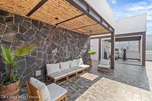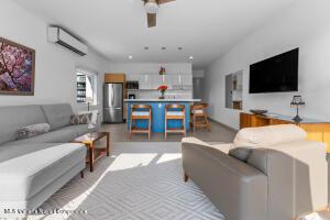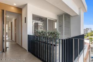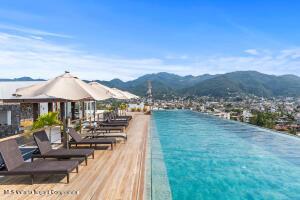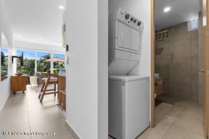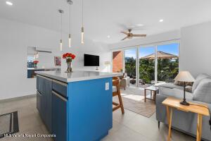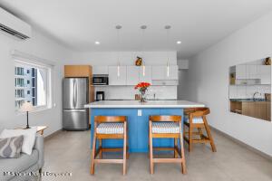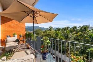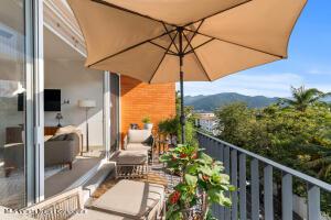 Espanol Abajo: Welcome to Via Milan, a stylish boutique condo building in the highly sought-after Versalles neighborhood. This bright 2-bed, 2-bath corner unit offers 1,171 sq.ft. of upgraded living, which includes two balconies plus a welcoming front terrace at the entrance. Enjoy serene, lush greenery along with a peek-a-boo view of the ocean, while you relax and enjoy Puerto Vallarta's signature sunsets from the front balcony. The open concept living room meets the kitchen, which boasts a beautiful custom-made quartz countertop island, along with high-end appliances. The second bedroom has a Murphy bed, offering flexibility to use it as a comfortable guest suite, a spacious home office or a hobby room when needed. Natural light fills the home, giving it an inviting and relaxed feel.